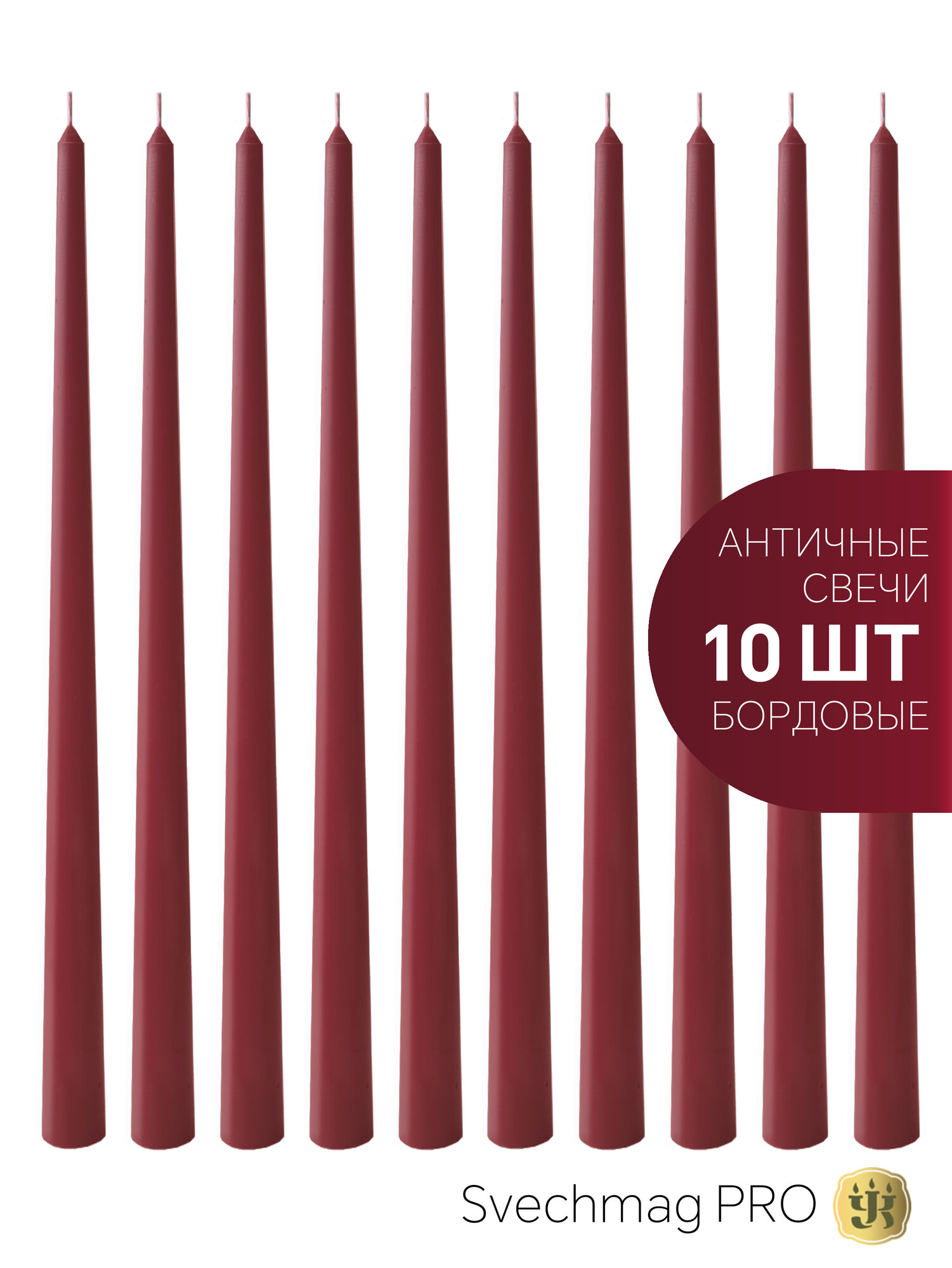 Свечи античные бордовые H26см столовые, набор 10 шт, Свечмаг интересное: