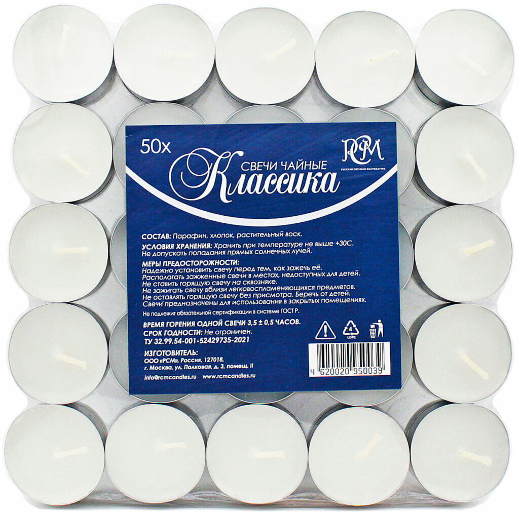 | Дополнительная информация | состав: парафин, хлопок, растительный воск; время горения одной свечи: 3.5±0.5 часов |