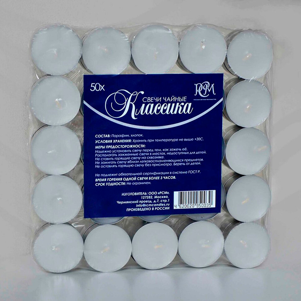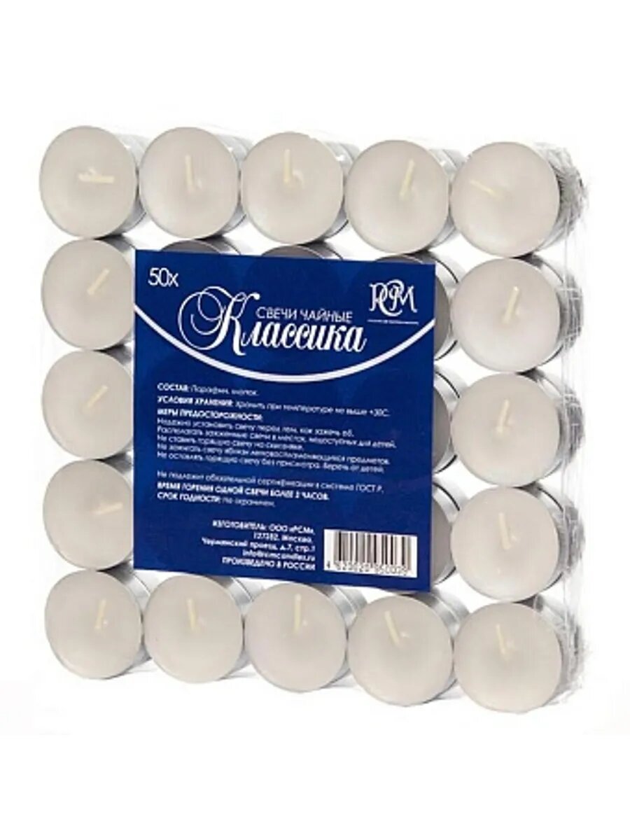 Набор чайных свечей "Классика", 50 штук