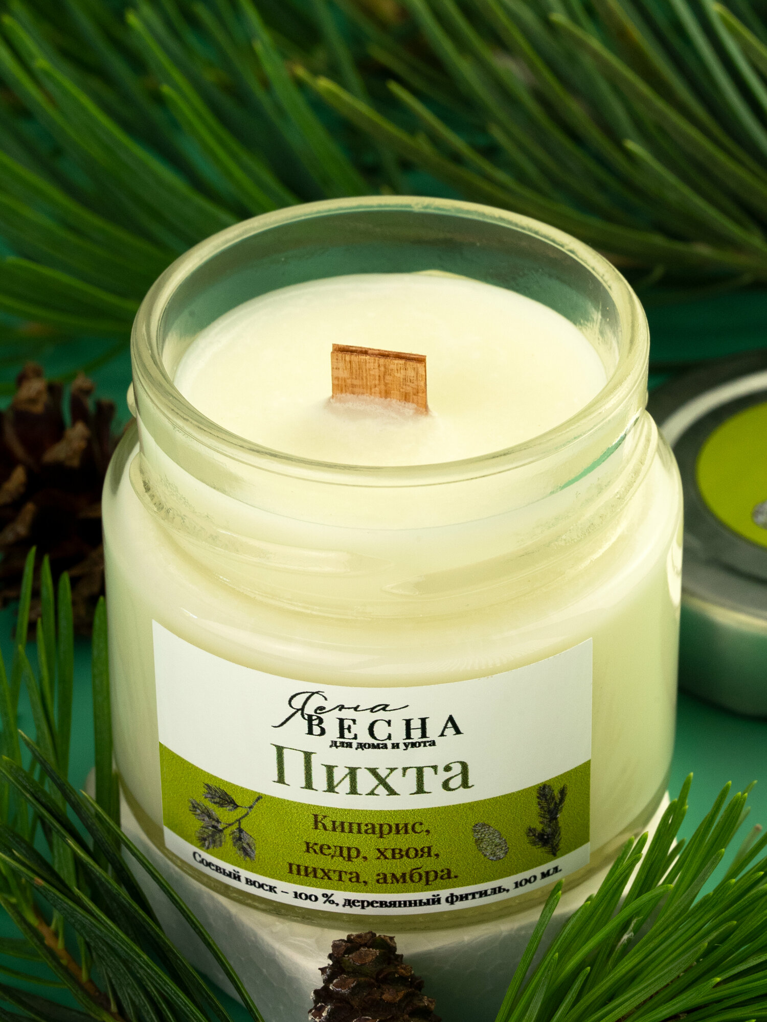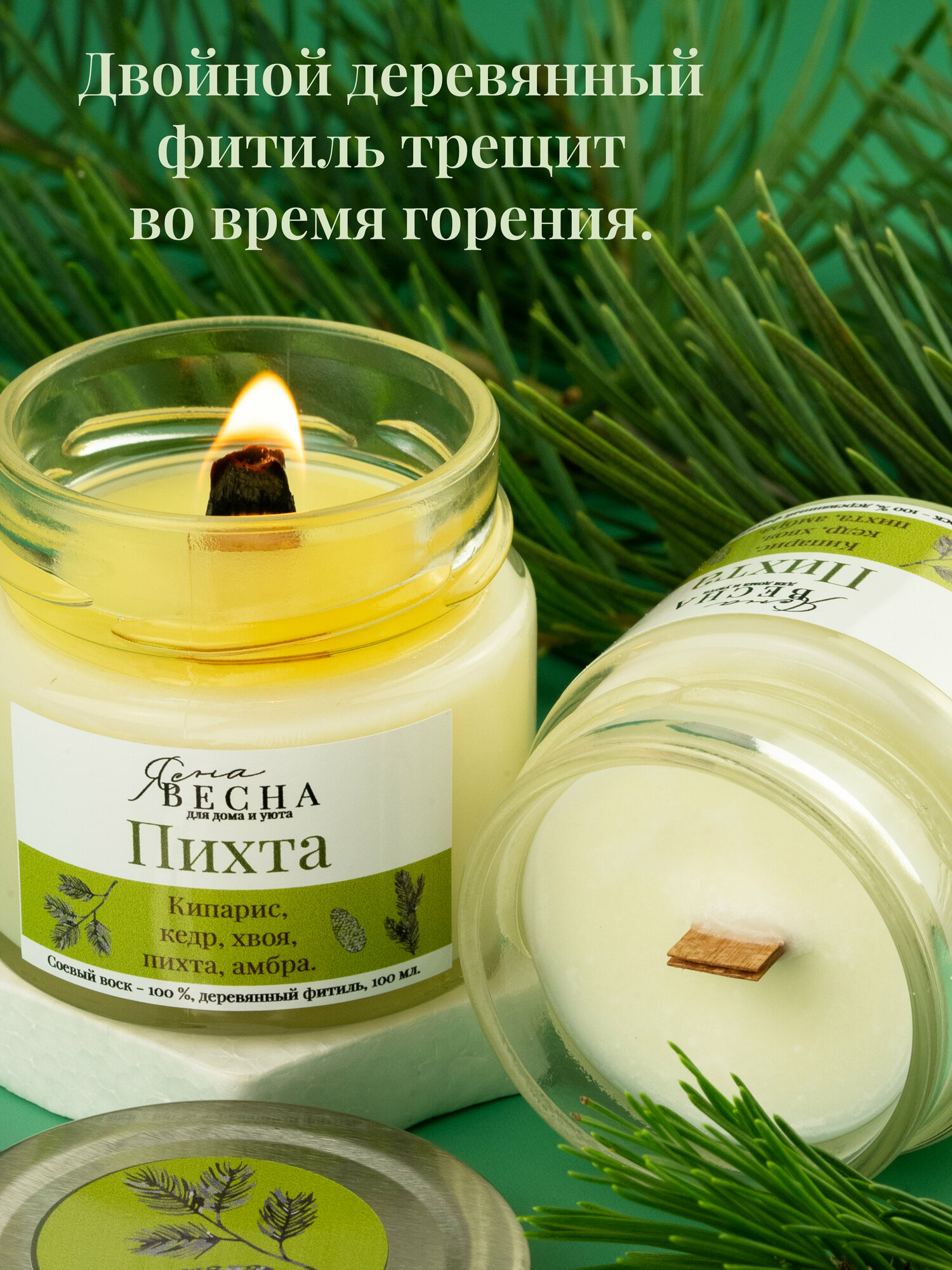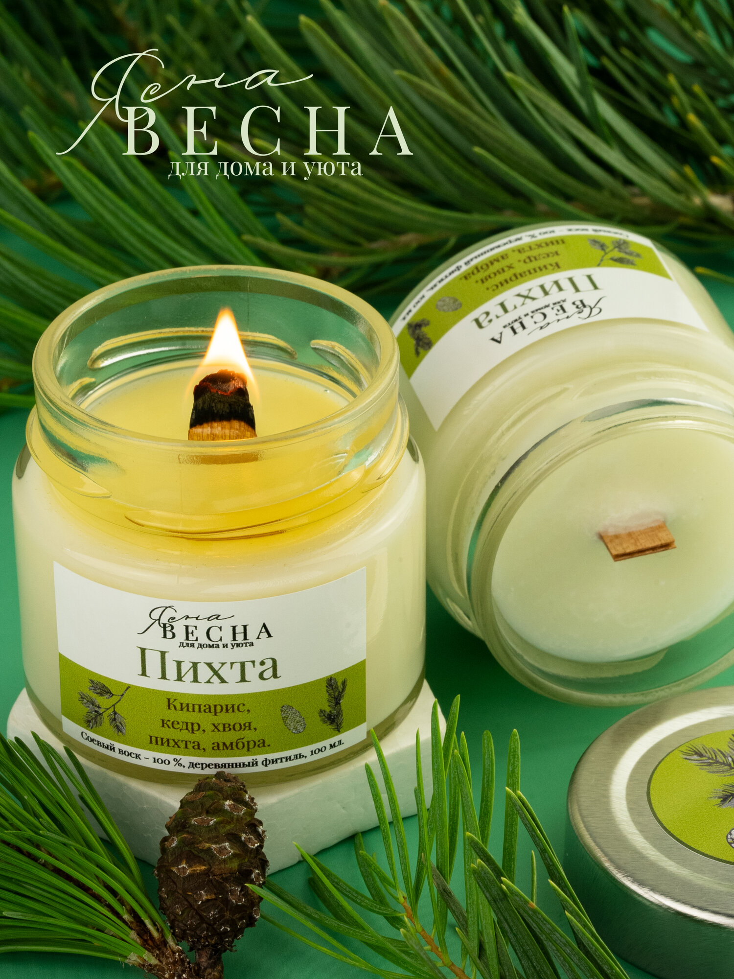 Купить Свеча ароматическая для дома с ароматом пихты в банке, объем 100 мл, двойной деревянный фитиль, соевый воск.