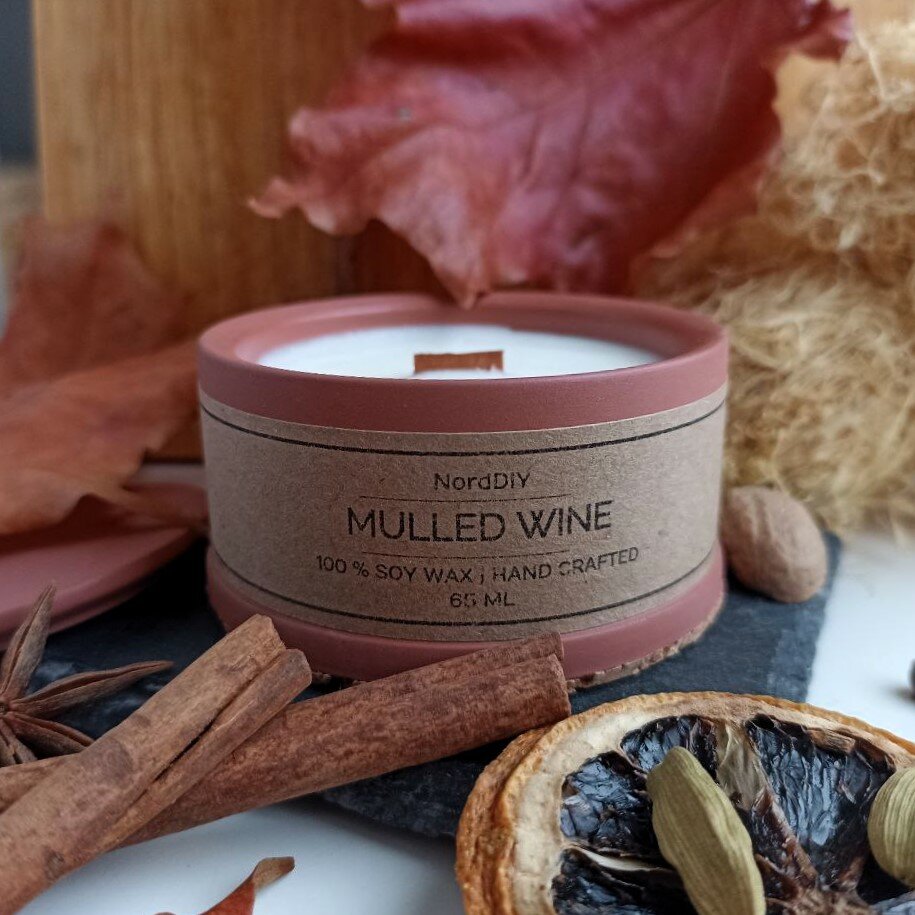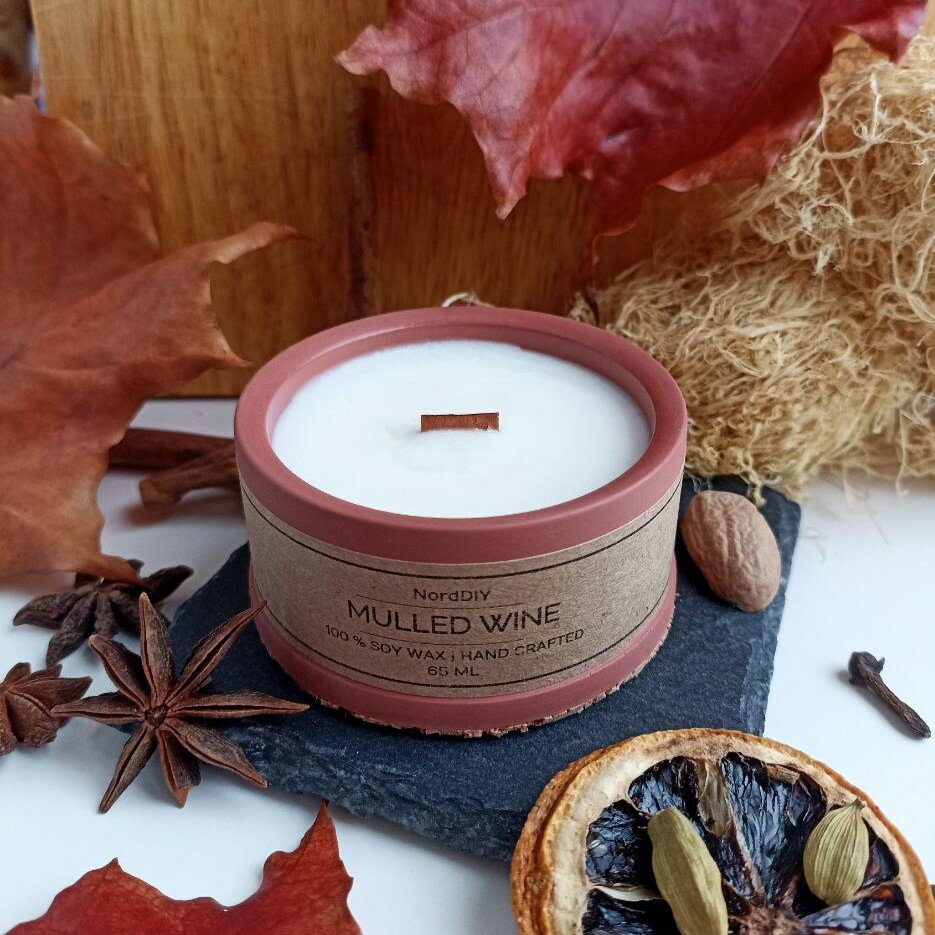 Свеча ароматическая с деревянным фитилём "Пряный глинтвейн" из соевого воска в стакане из гипса интересное: