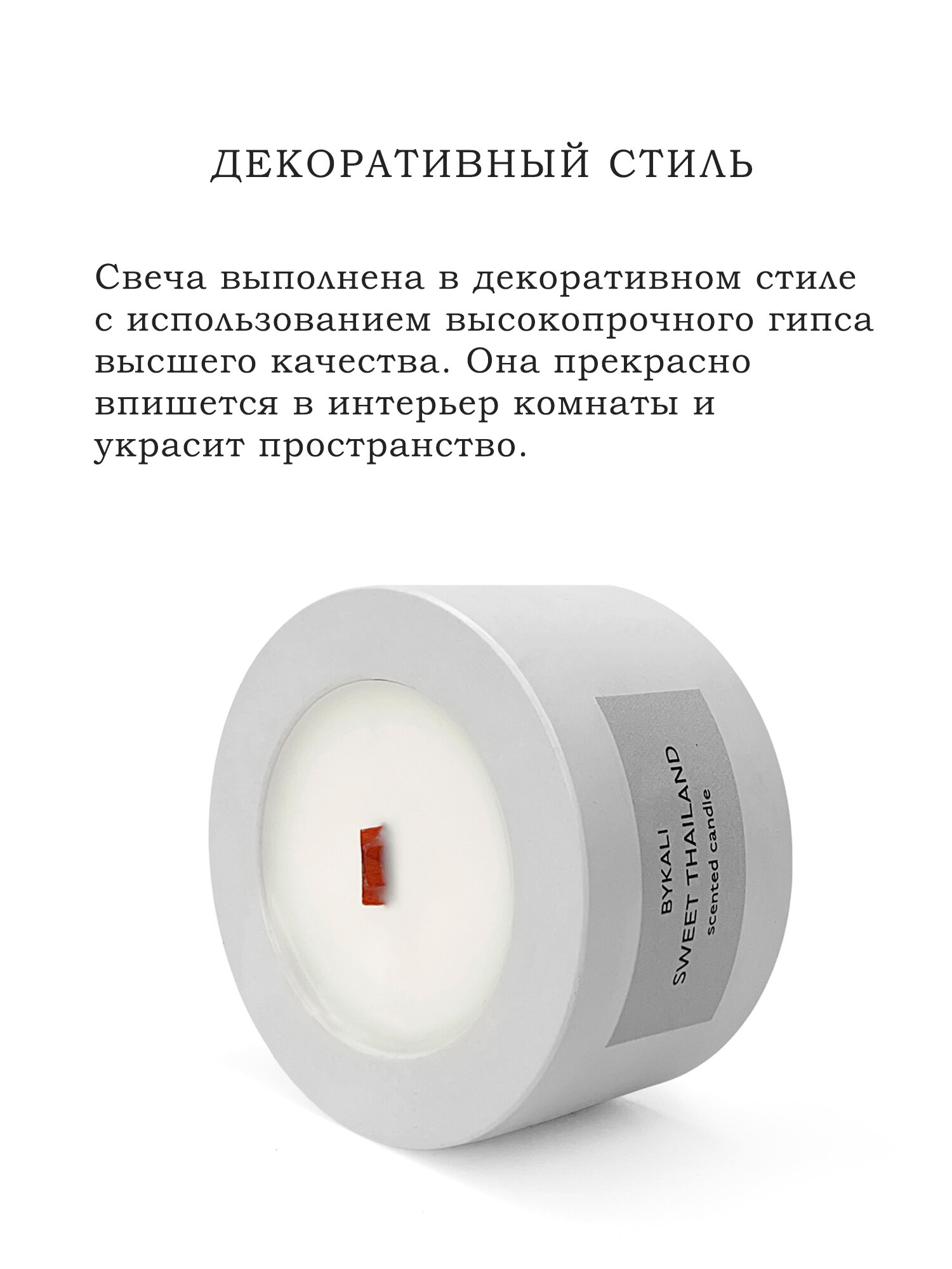 Ароматическая свеча с деревянным фитилем интерьерная ручной работы из соевого воска в гипсе "Сладкий Таиланд" интересное: