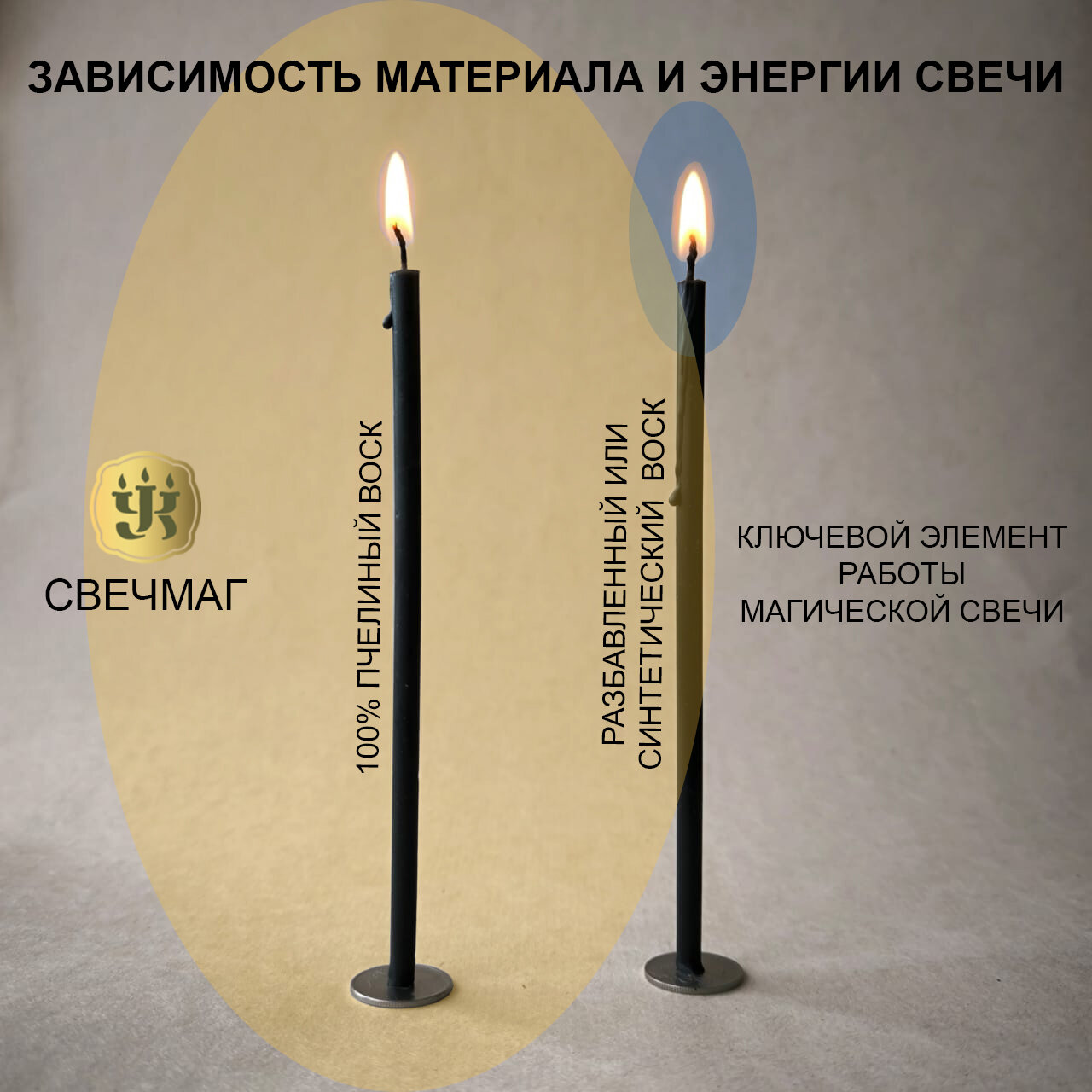 Свечи черные из 100% пчелиного воска 10шт, 15 см магические для ритуалов и обрядов, тонкие как церковные для скруток, Свечмаг