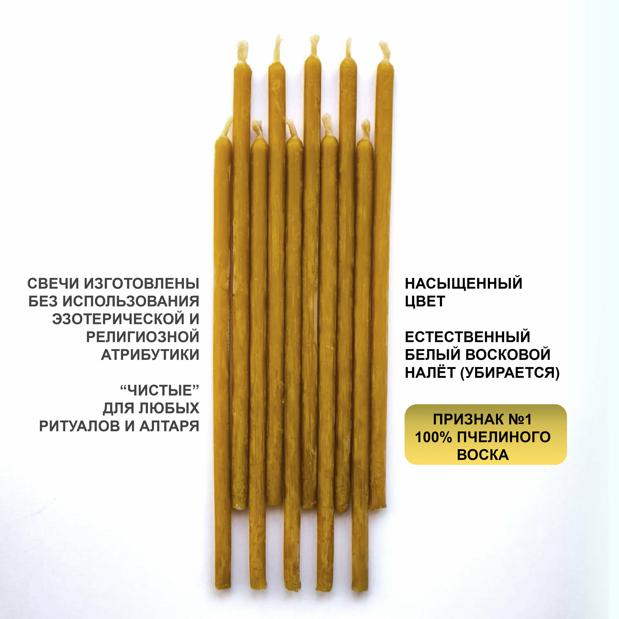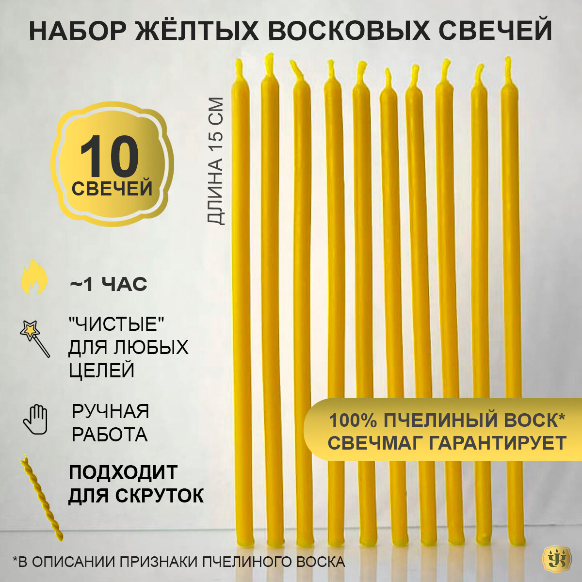 Купить Свечи желтые из 100% пчелиного воска 10шт, 15 см магические для ритуалов и обрядов, тонкие как церковные для скруток, Свечмаг