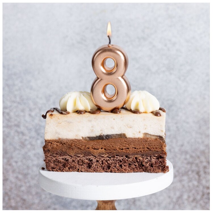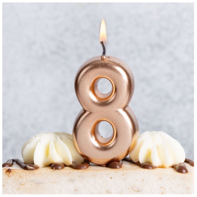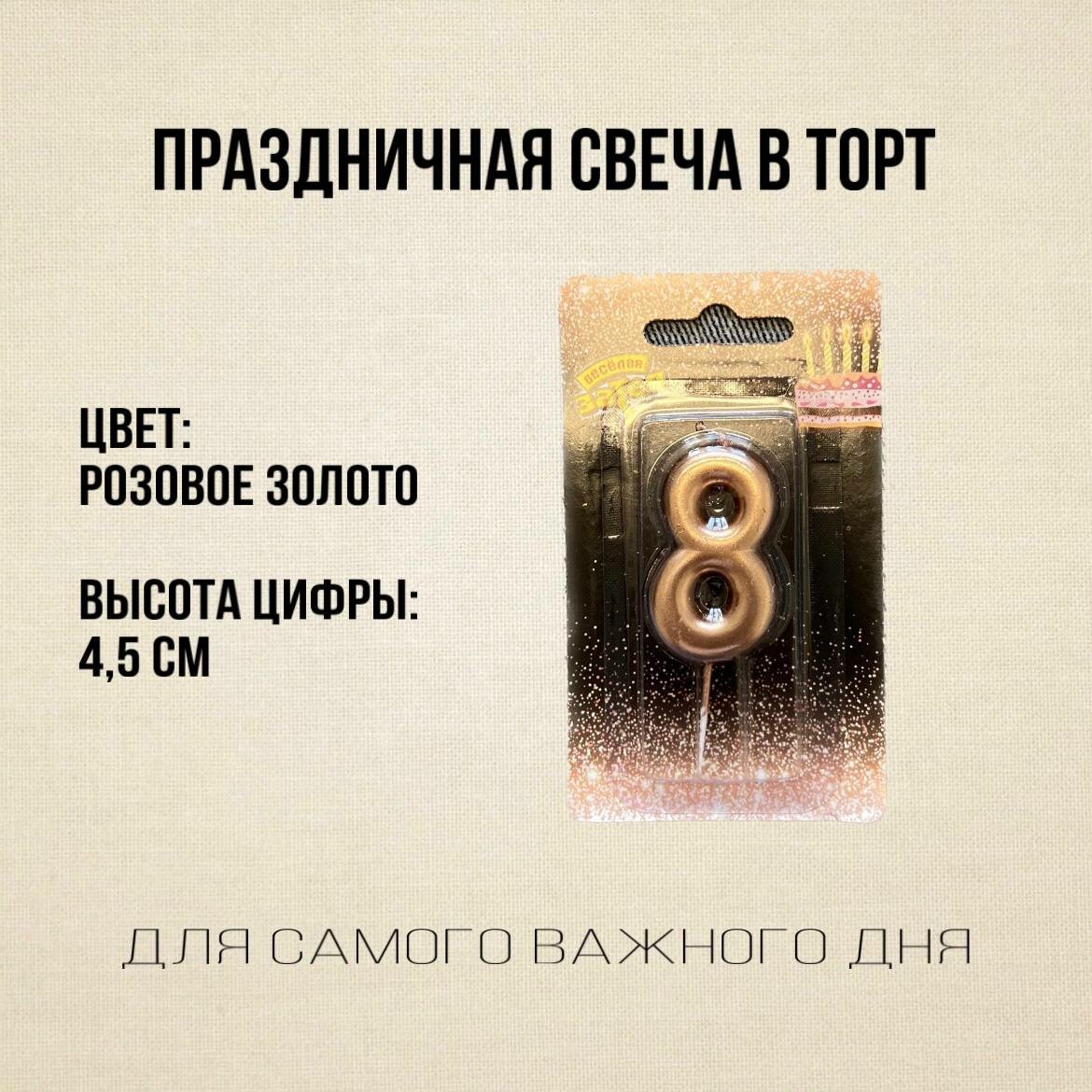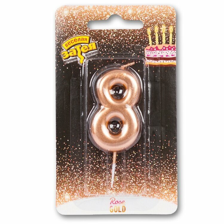 Купить Свечи для торта, Весёлая затея, Свеча-цифра 8 розовое золото
