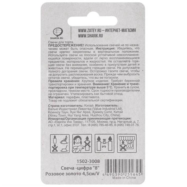 Ниже Вы можете прочитать отзывы на Свечи для торта, Весёлая затея, Свеча-цифра 8 розовое золото, ознакомится с подробными характеристиками, посмотреть интересные обзоры и фотографии на Свечи для торта, Весёлая затея, Свеча-цифра 8 розовое золото.