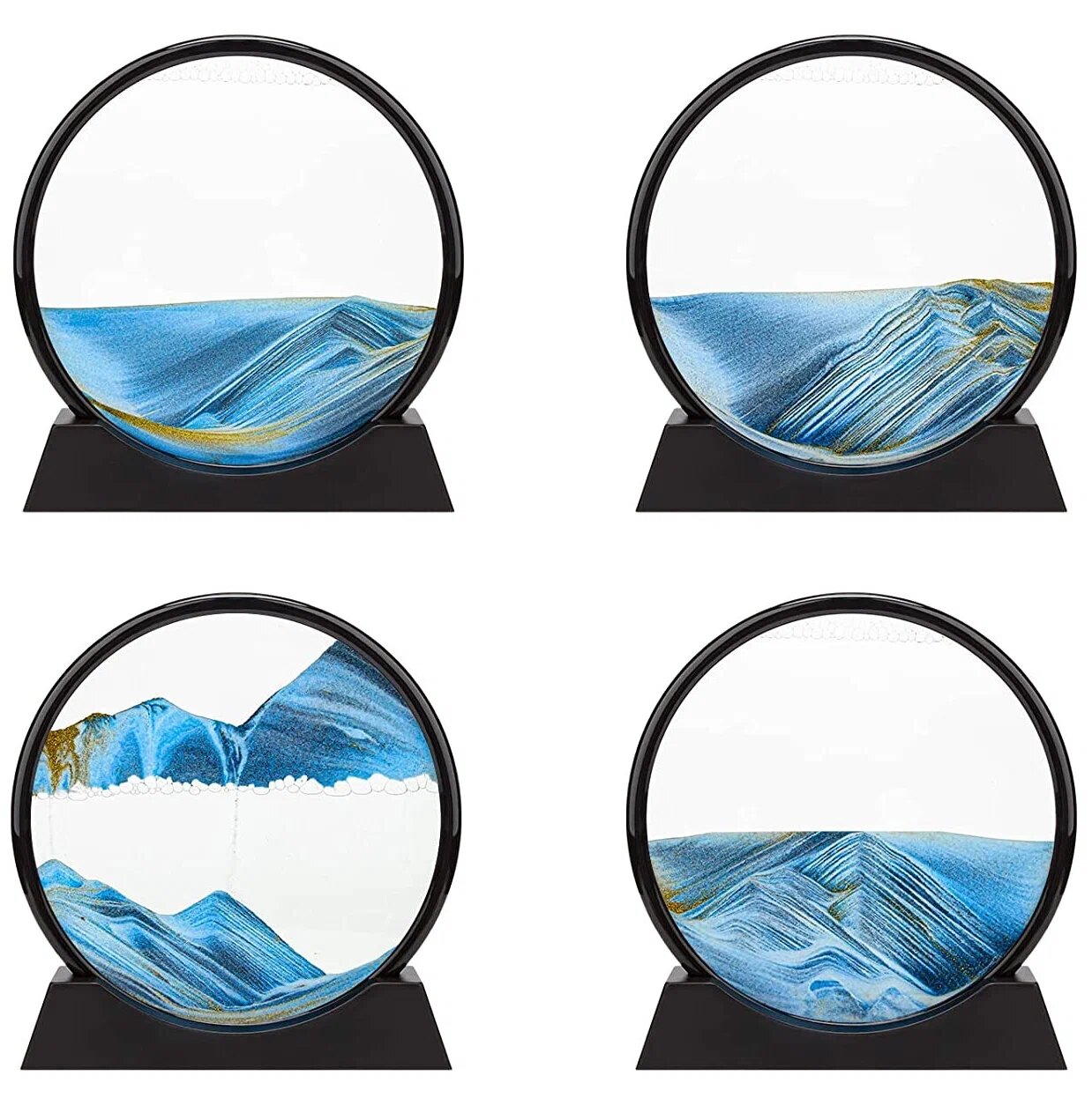 Купить Песочная движущаяся картина 3D диаметр 18 см в чёрной рамке, синий песок