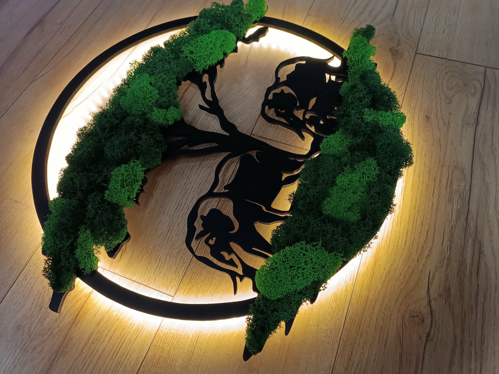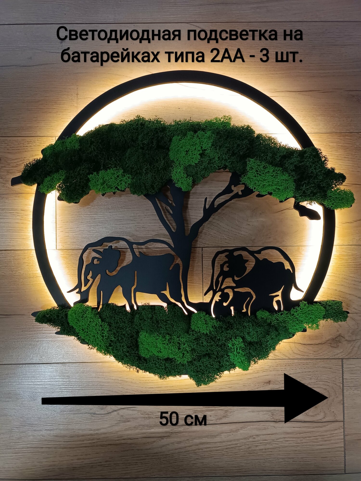 Панно "Слоны" со мхом и беспроводной подсветкой интересное: