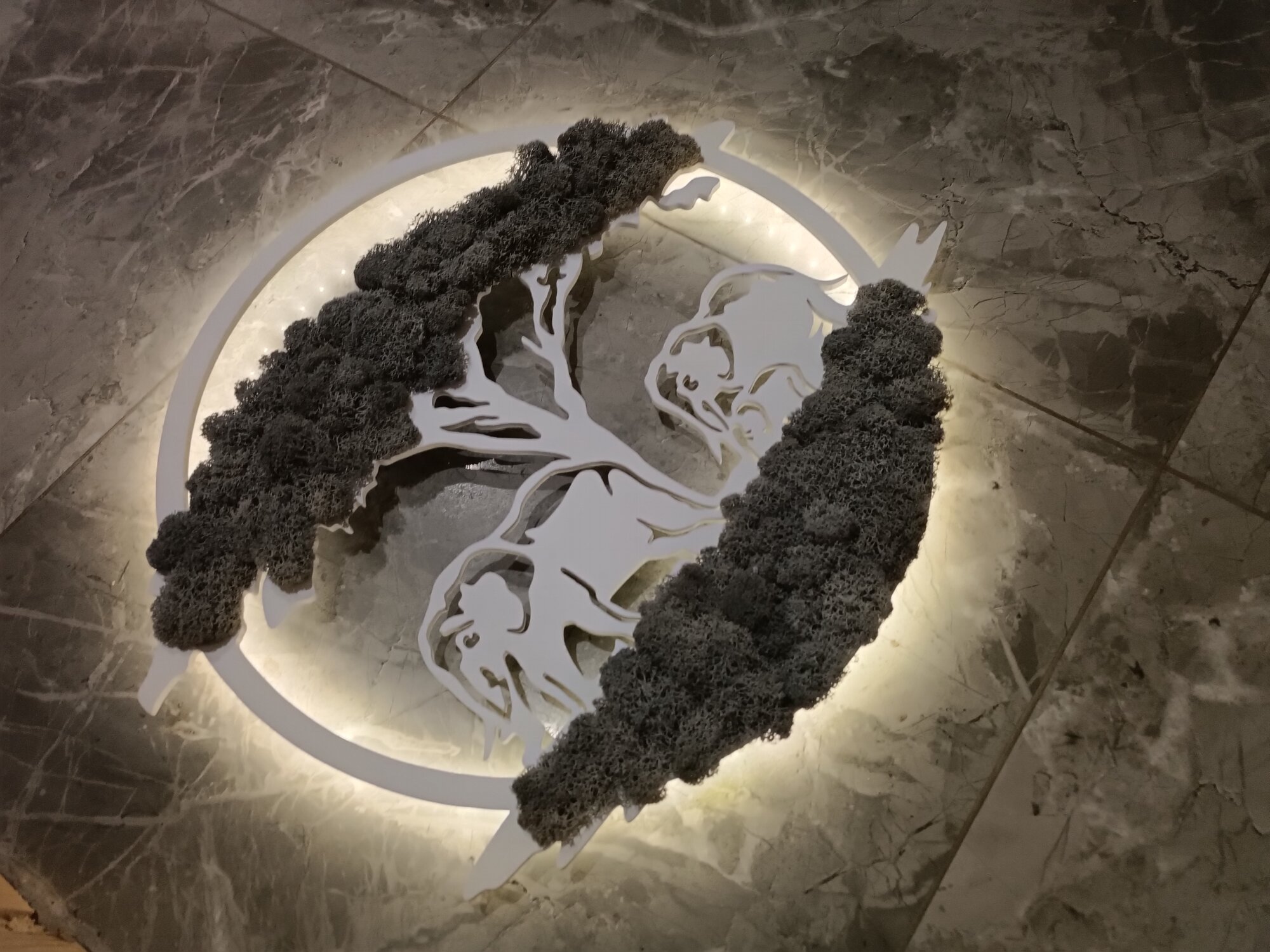 Панно "Слоны" со мхом и беспроводной подсветкой