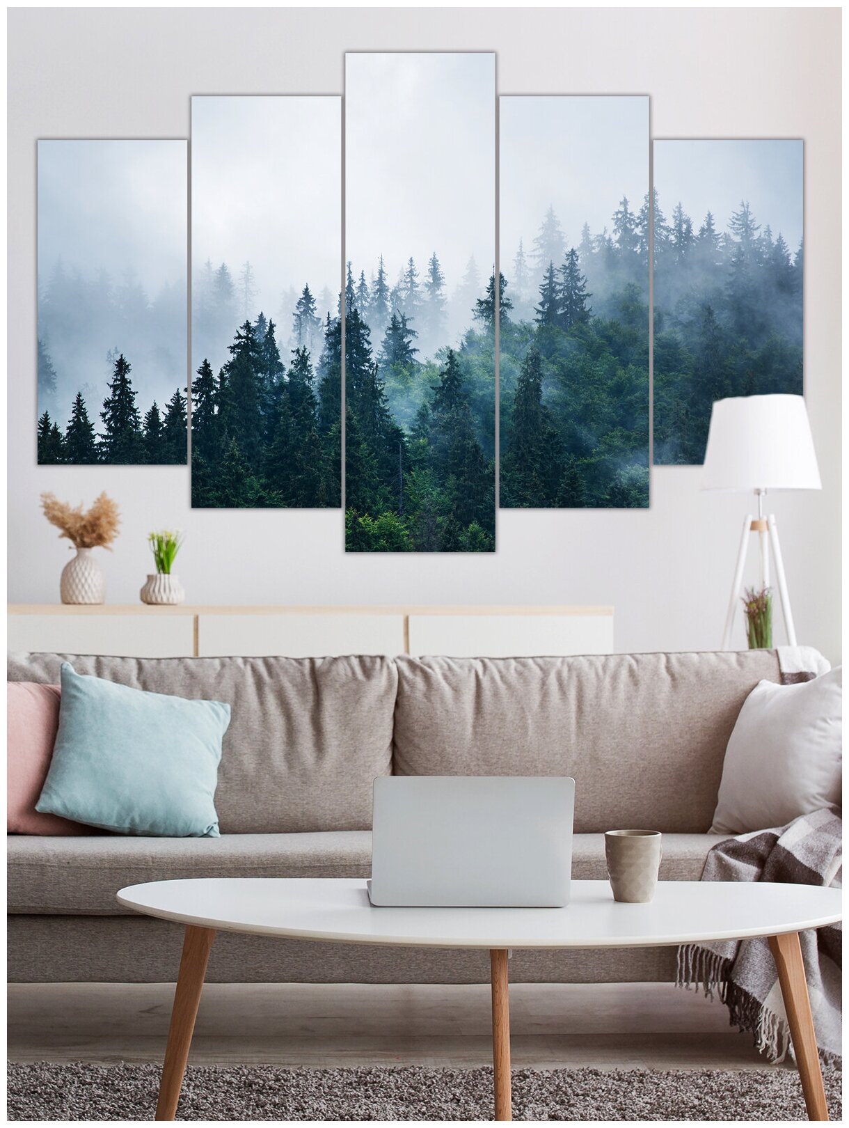 Картина модульная большая на стену, интерьерная, на холсте, готовая, в спальню, в гостиную, Сосновый лес в тумане, Пейзаж 140х80см интересное: