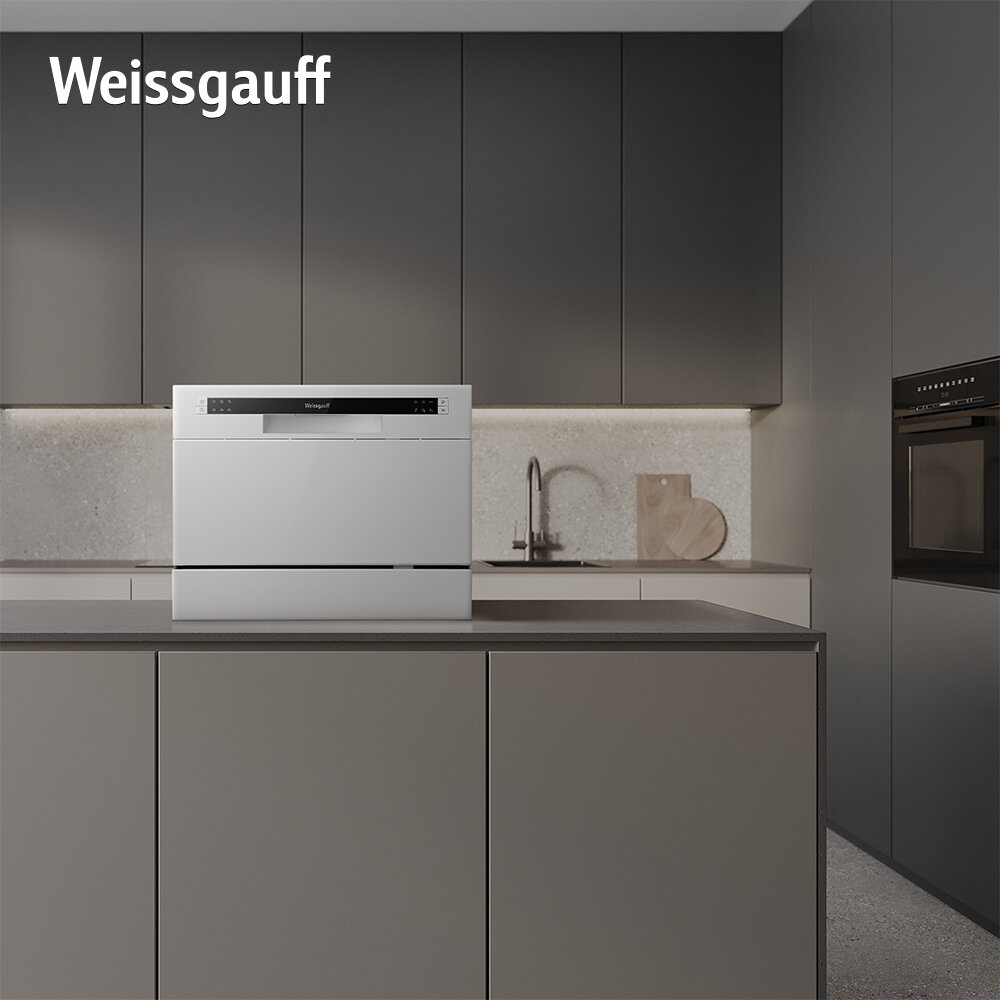 Настольная посудомоечная машина Weissgauff TDW 4006 З года гарантии, 6 комплектов, 6 программ, Электронное управление, Быстрая мойка 30 мин, Индикация работы, Таймер, Дозагрузка посуды, Низкий уровень шума