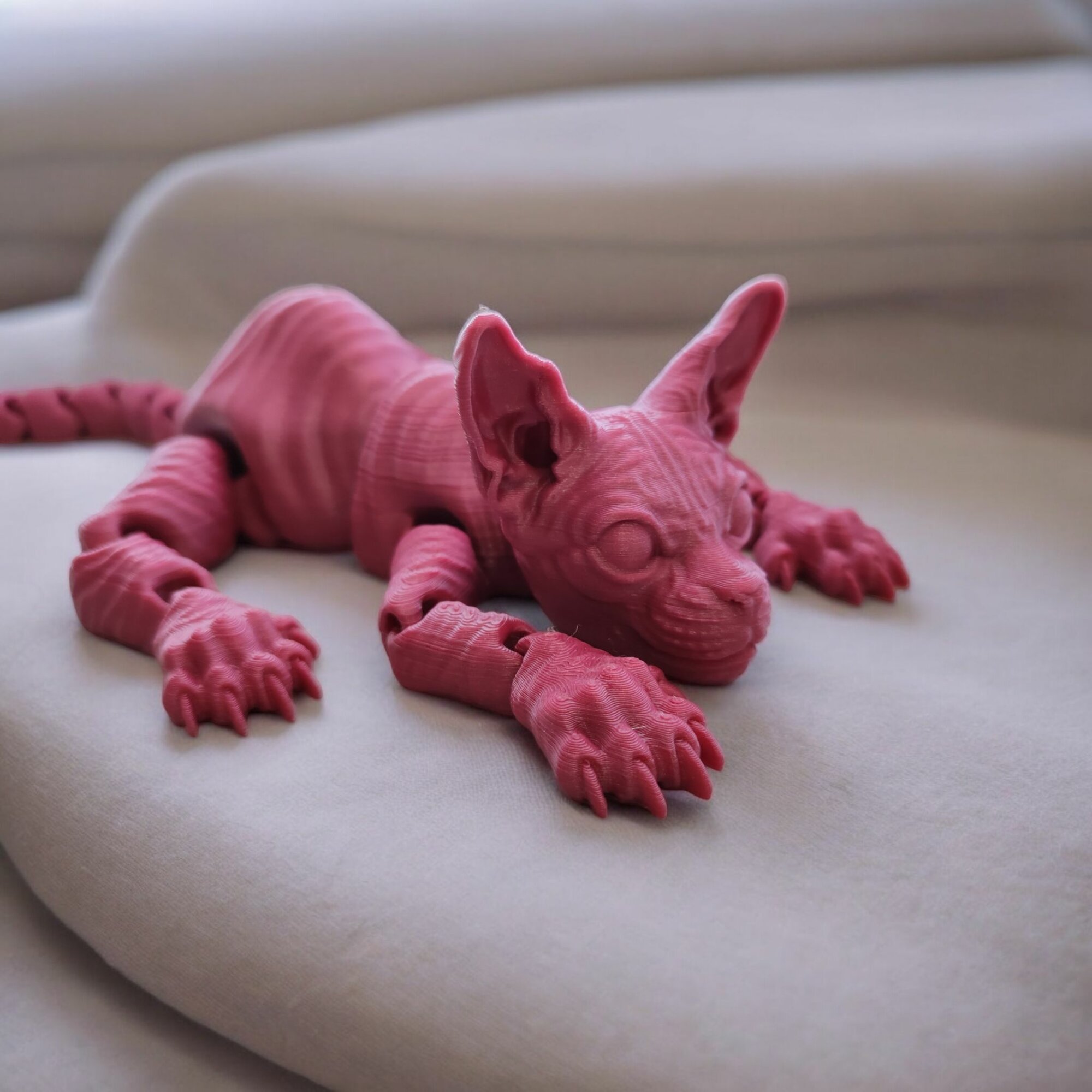Подвижная игрушка кошка Сфинкс V-ушки, розовый флуоресцентный