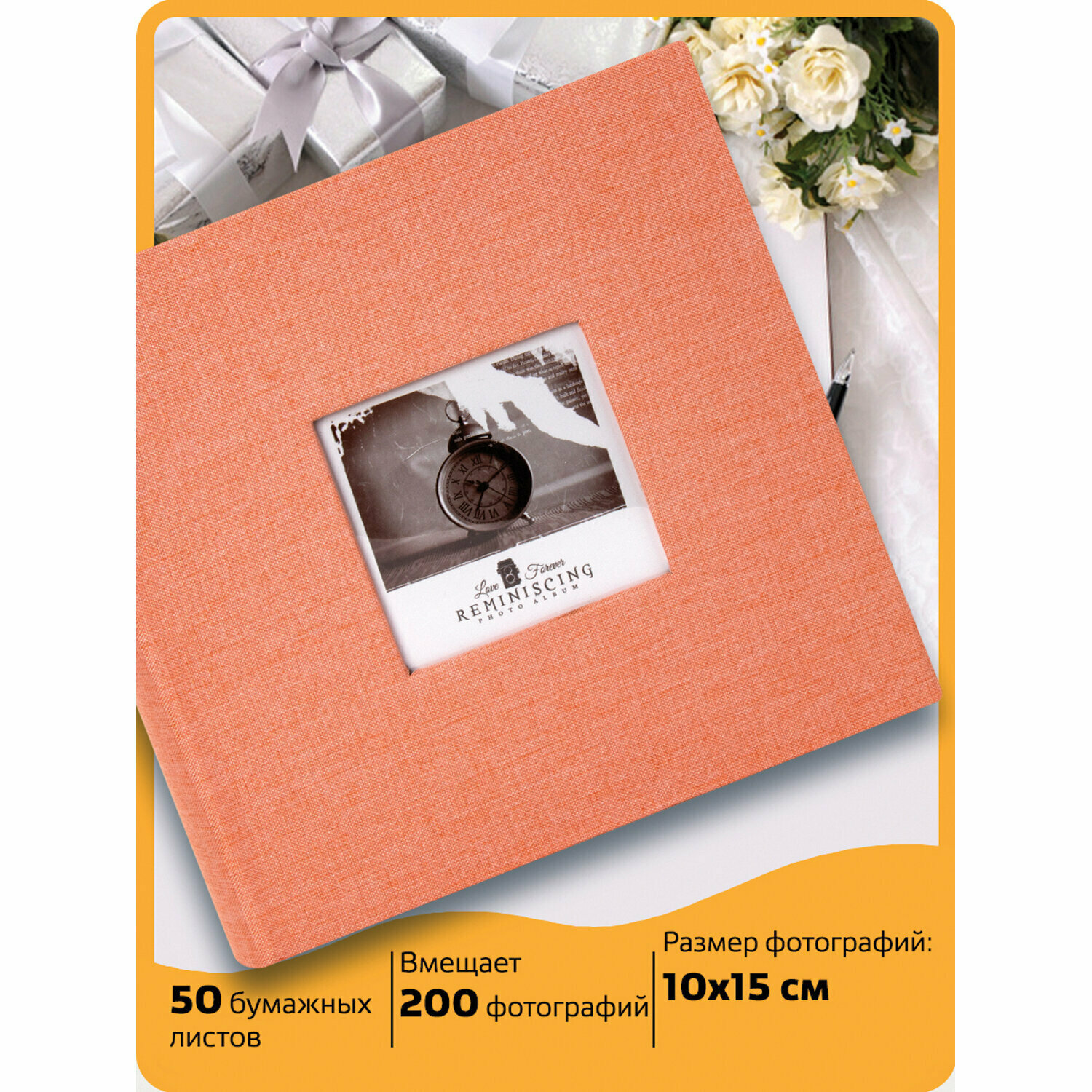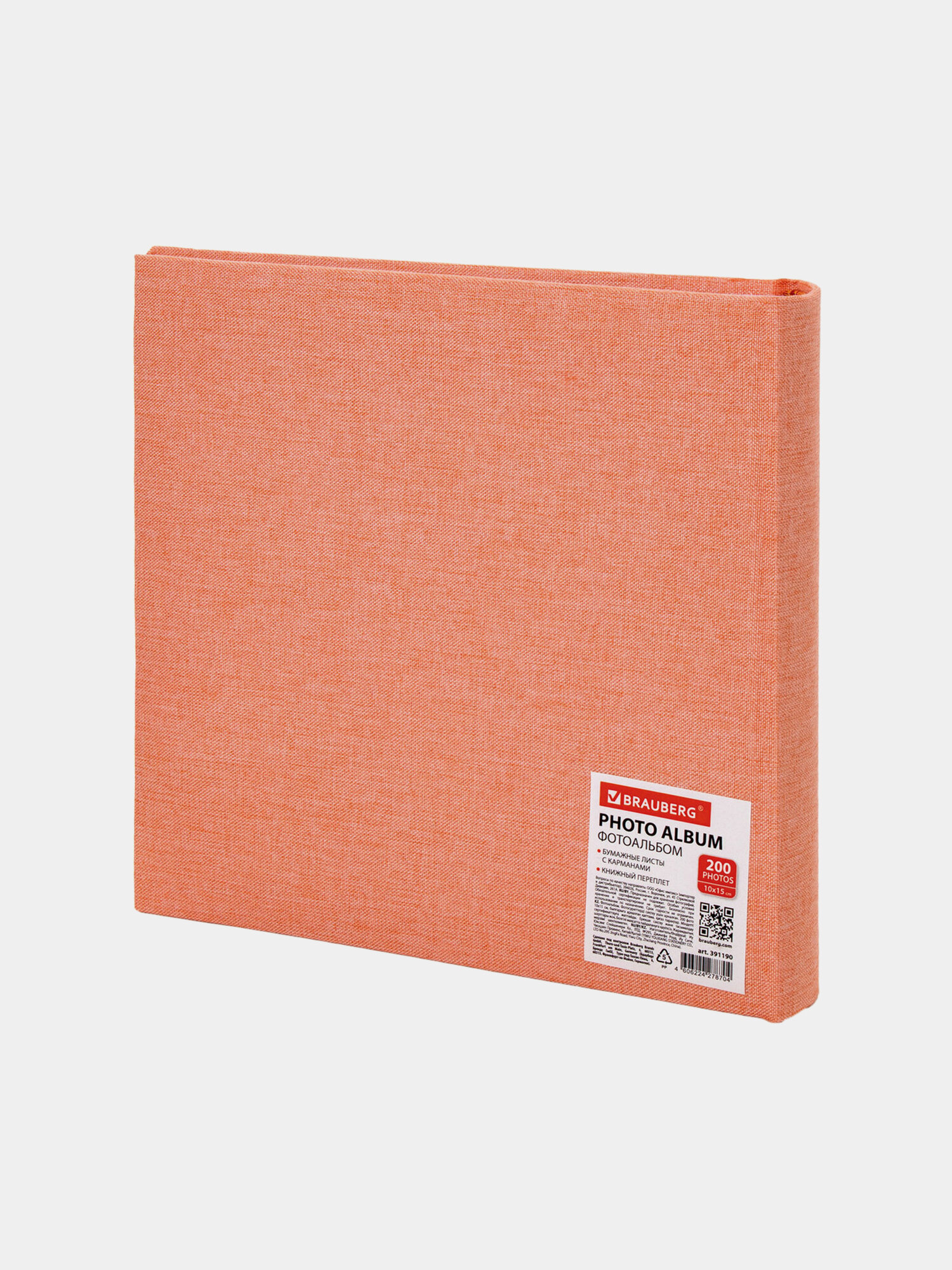 Фотоальбом BRAUBERG "Персик" на 200 фото 10*15 см, ткань, персиковый, 391190