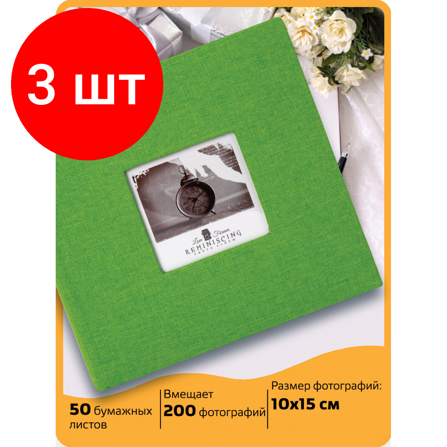 Купить Комплект 3 шт, Фотоальбом BRAUBERG "Лайм" на 200 фото 10х15 см, ткань, зеленый, 391189