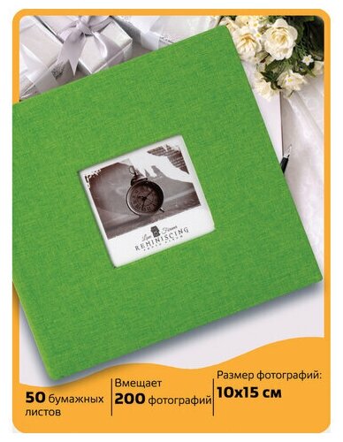 Фотоальбом BRAUBERG "Лайм" на 200 фото 10*15 см, ткань, зеленый, 391189