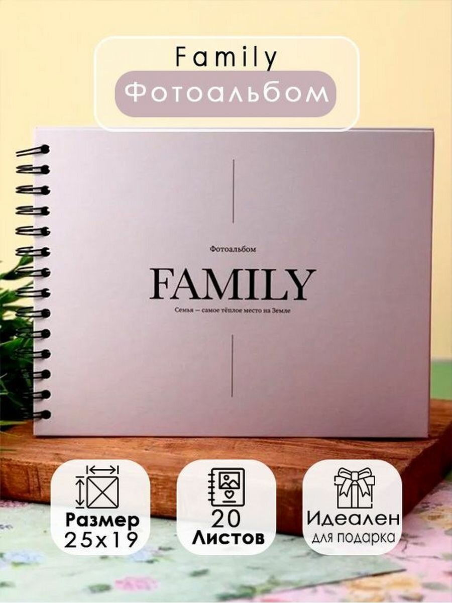 Фотоальбом семейный на пружине "Семья", 25х19 см, 20 черных листов