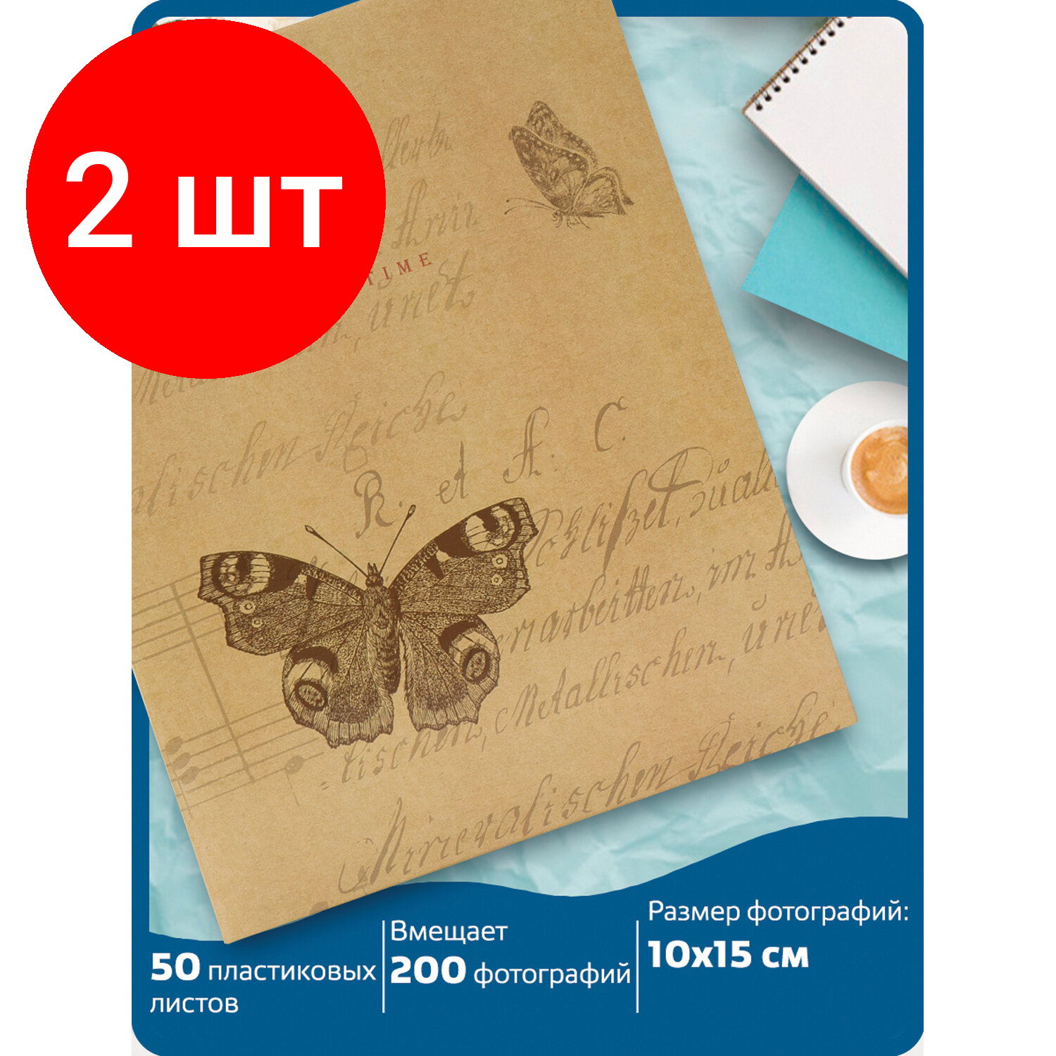 Фотоальбом Brauberg "Бабочка, крафт", на 200 фото 10х15см, твердая обложка, термосварка, 2шт. (391164)