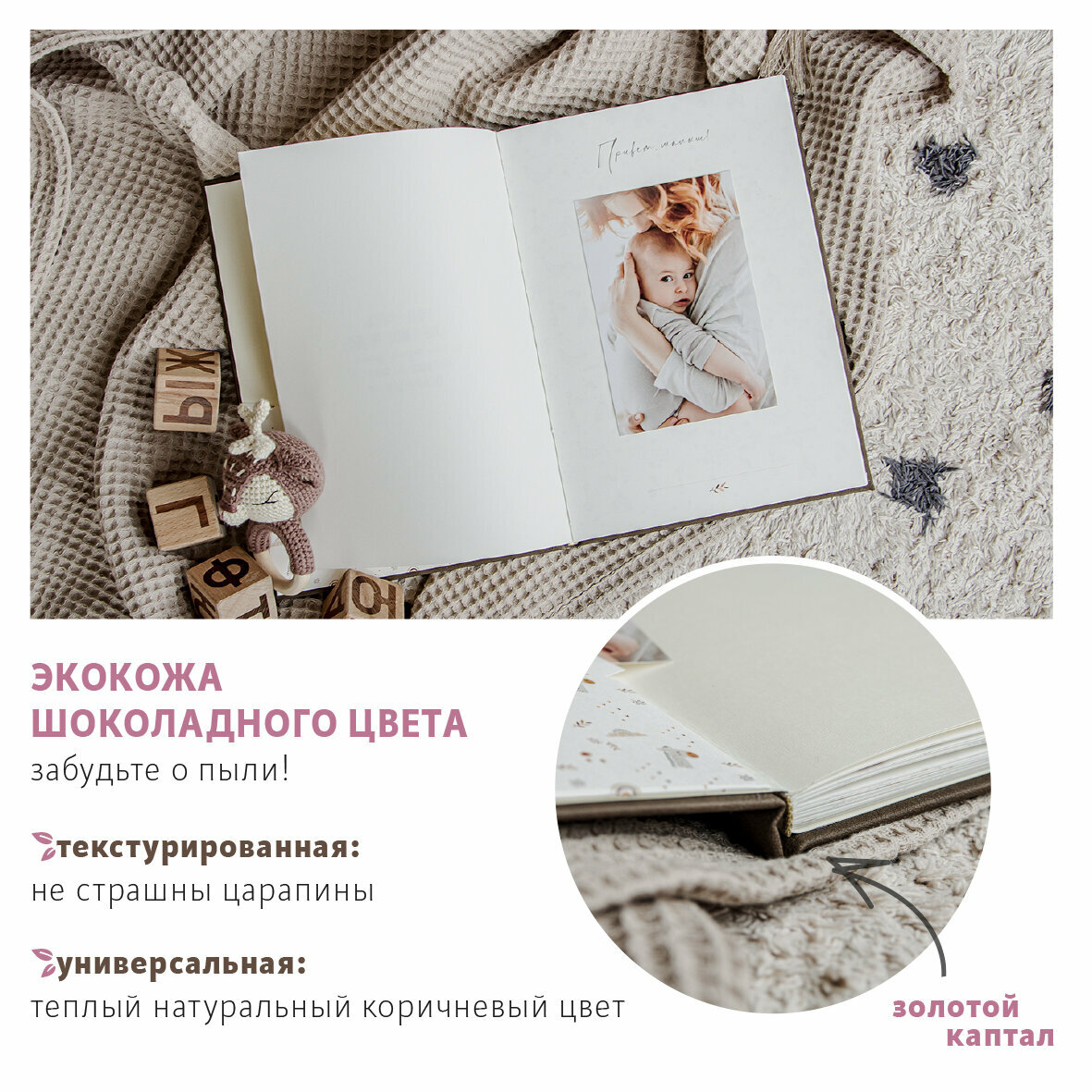 Альбом новорожденного "Мокка Мусс" / экокожа, бумага айвори / 76 фото