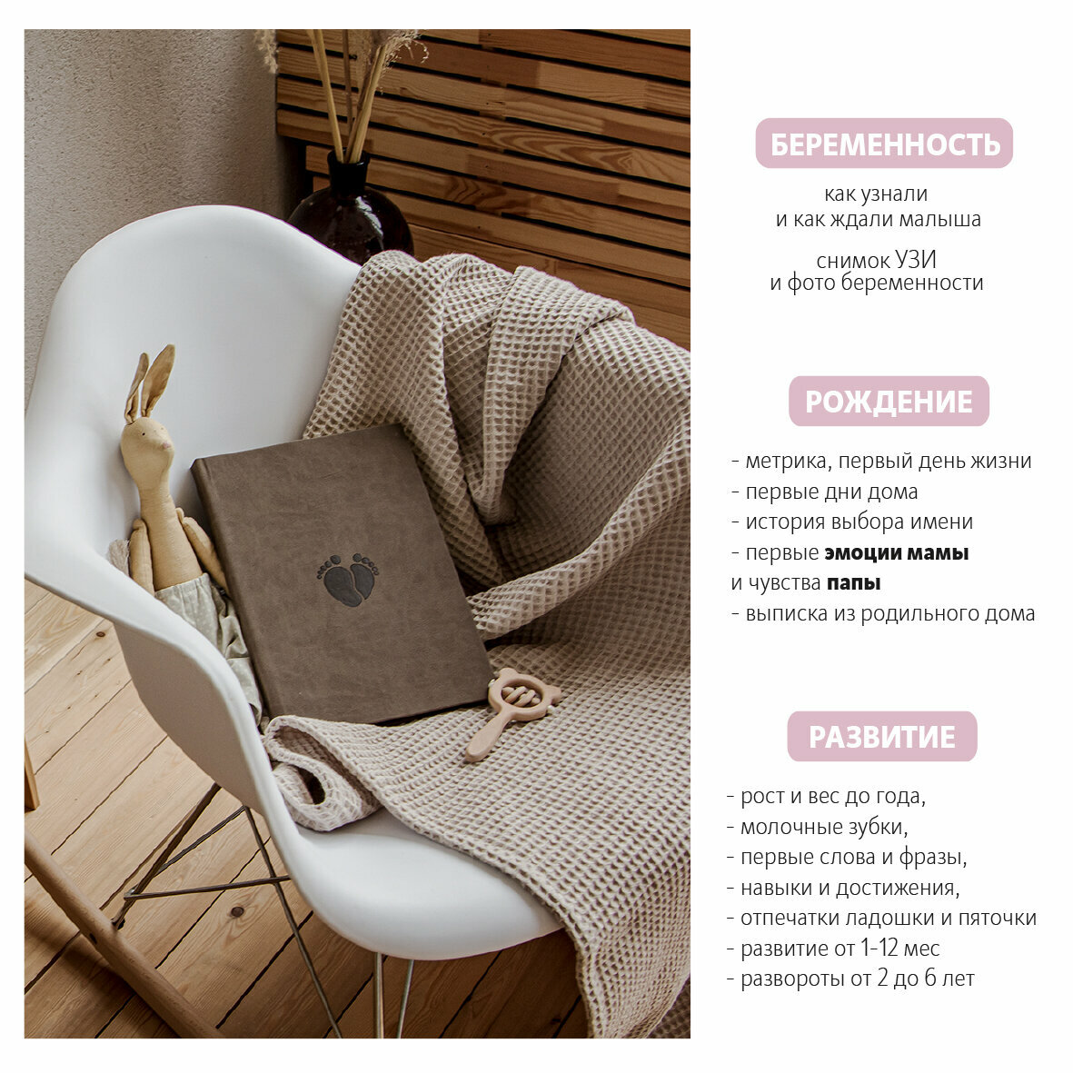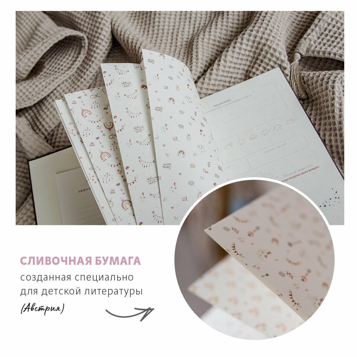 Первый альбом новорожденного / Топленое молоко / айвори бумага / 76 фото