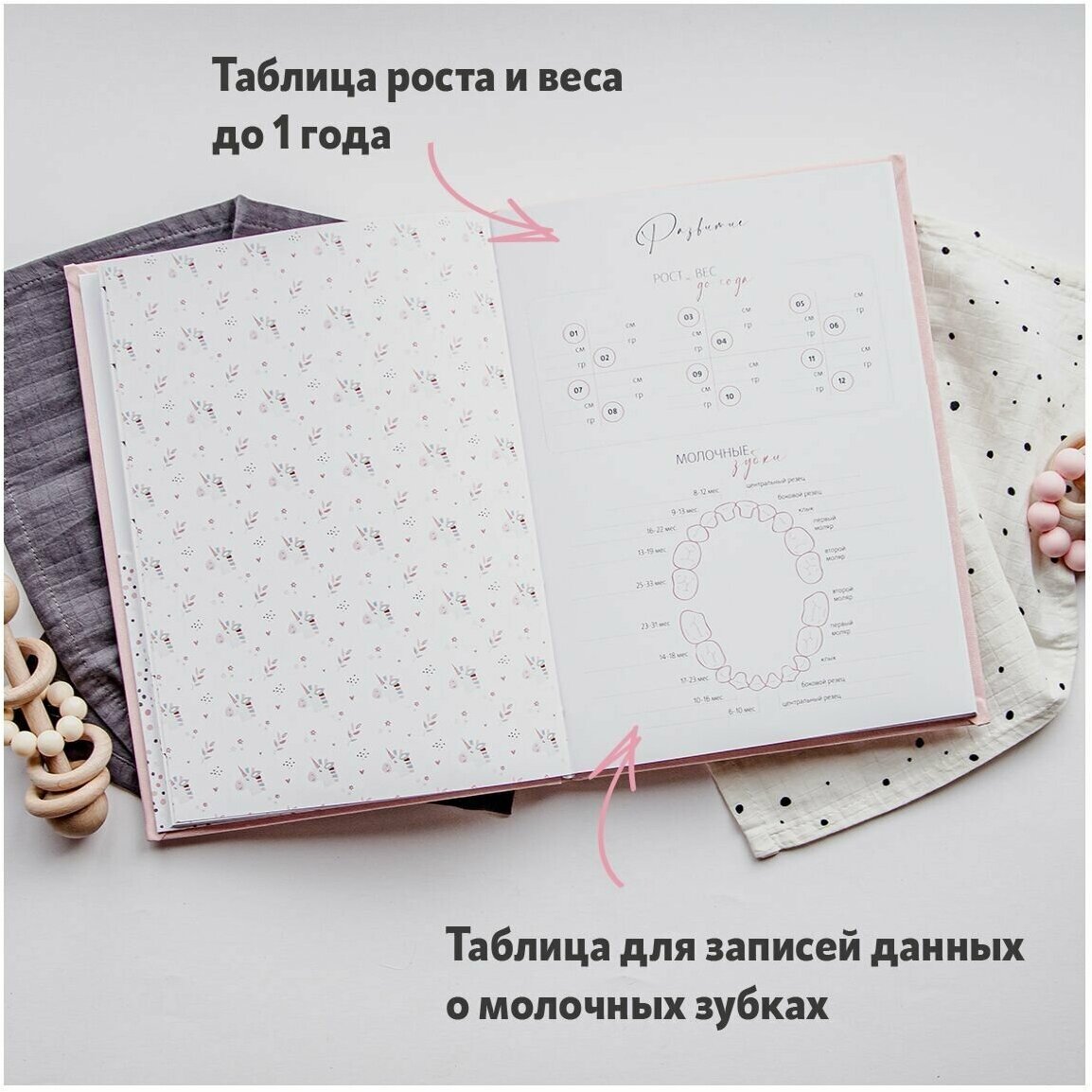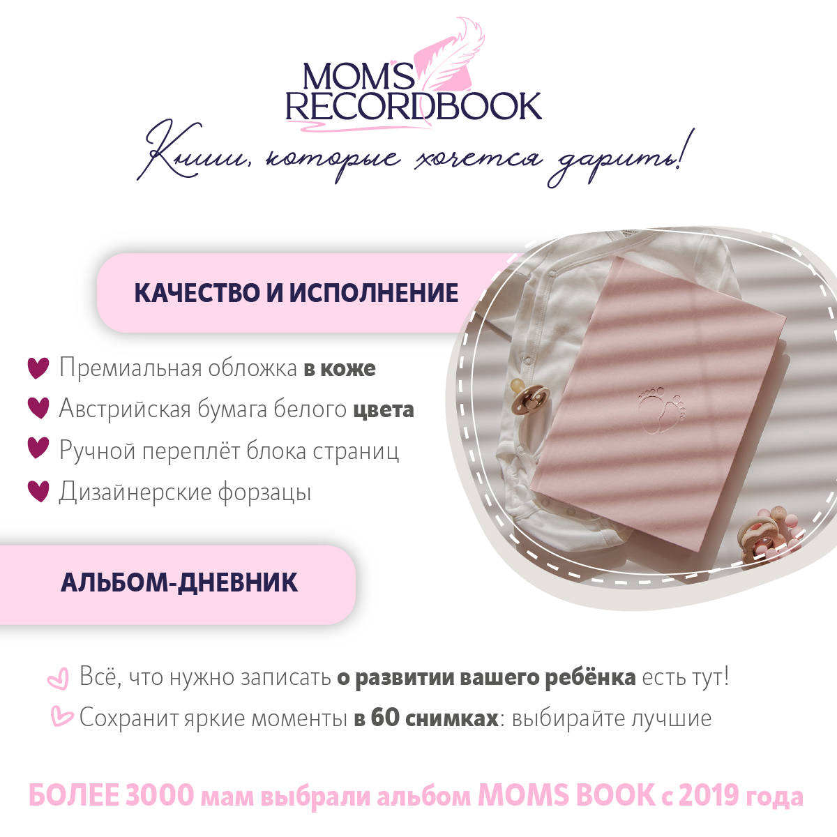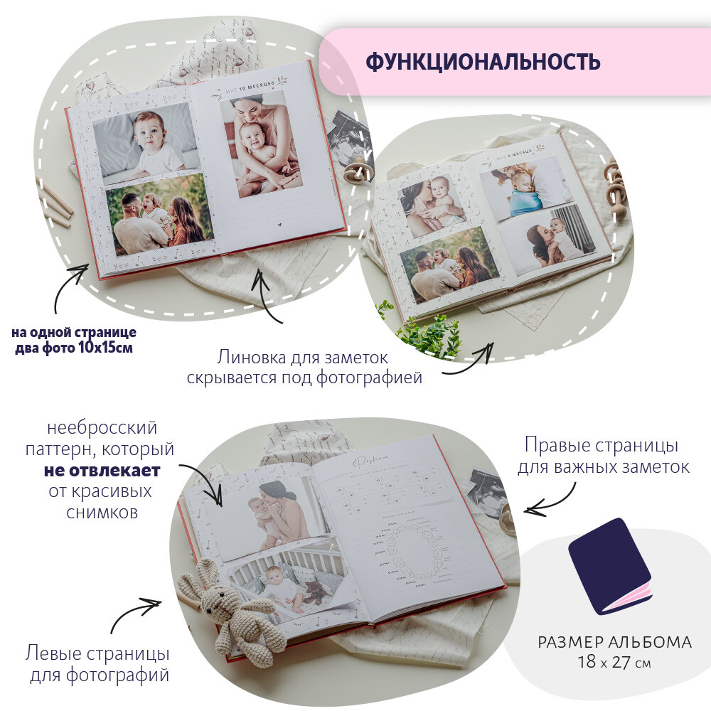 Альбом для новорожденной / нежно-розовая кожа / 64 страницы / MOM'S RECORDBOOK интересное: