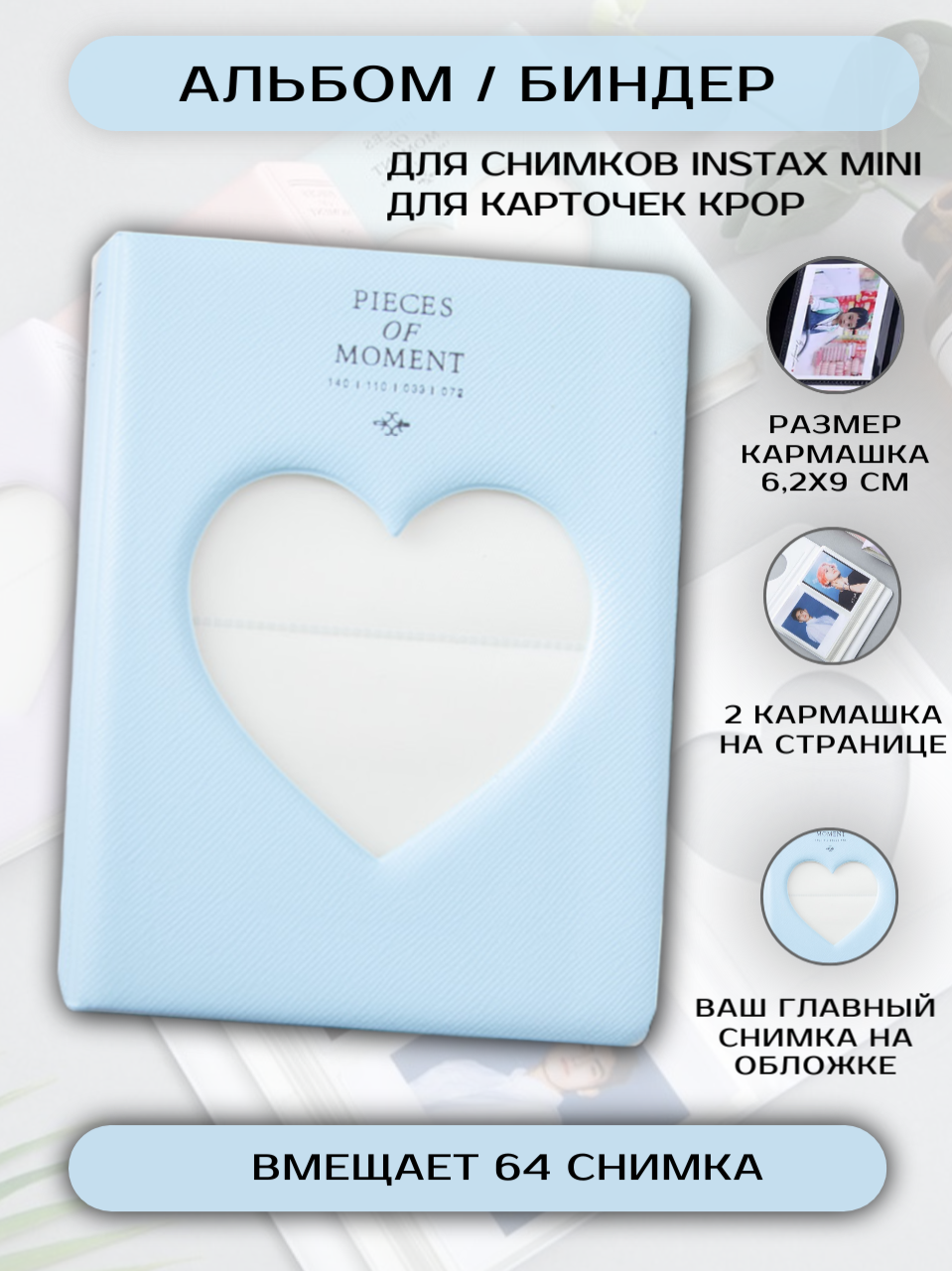 Фотоальбом для Instax mini, 64 фото, биндер для карт kpop