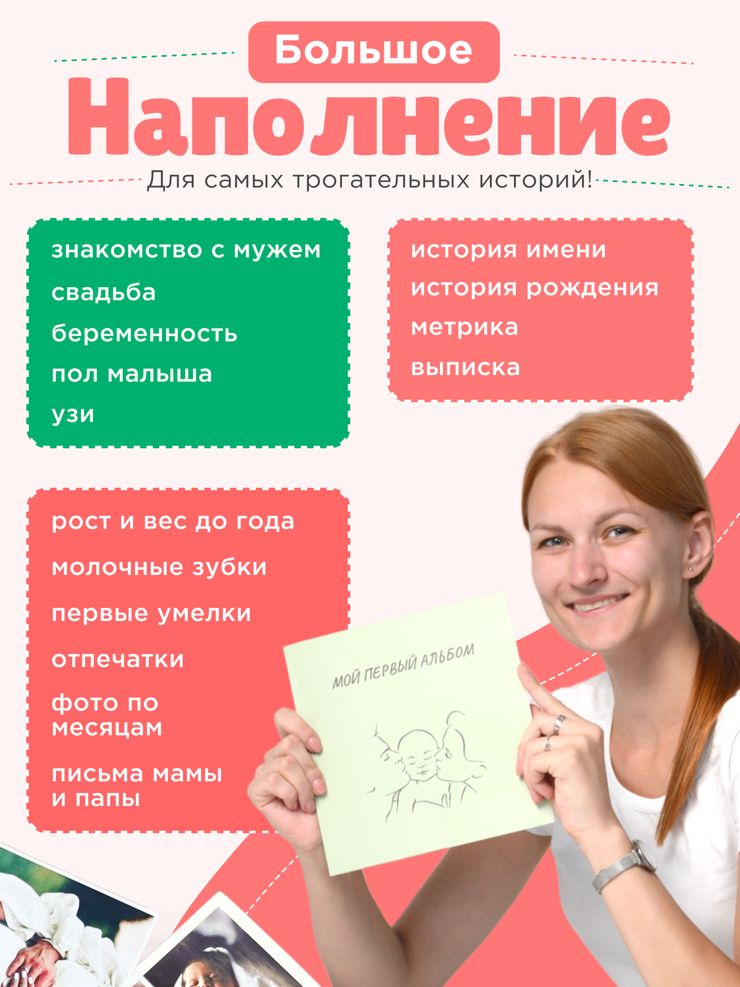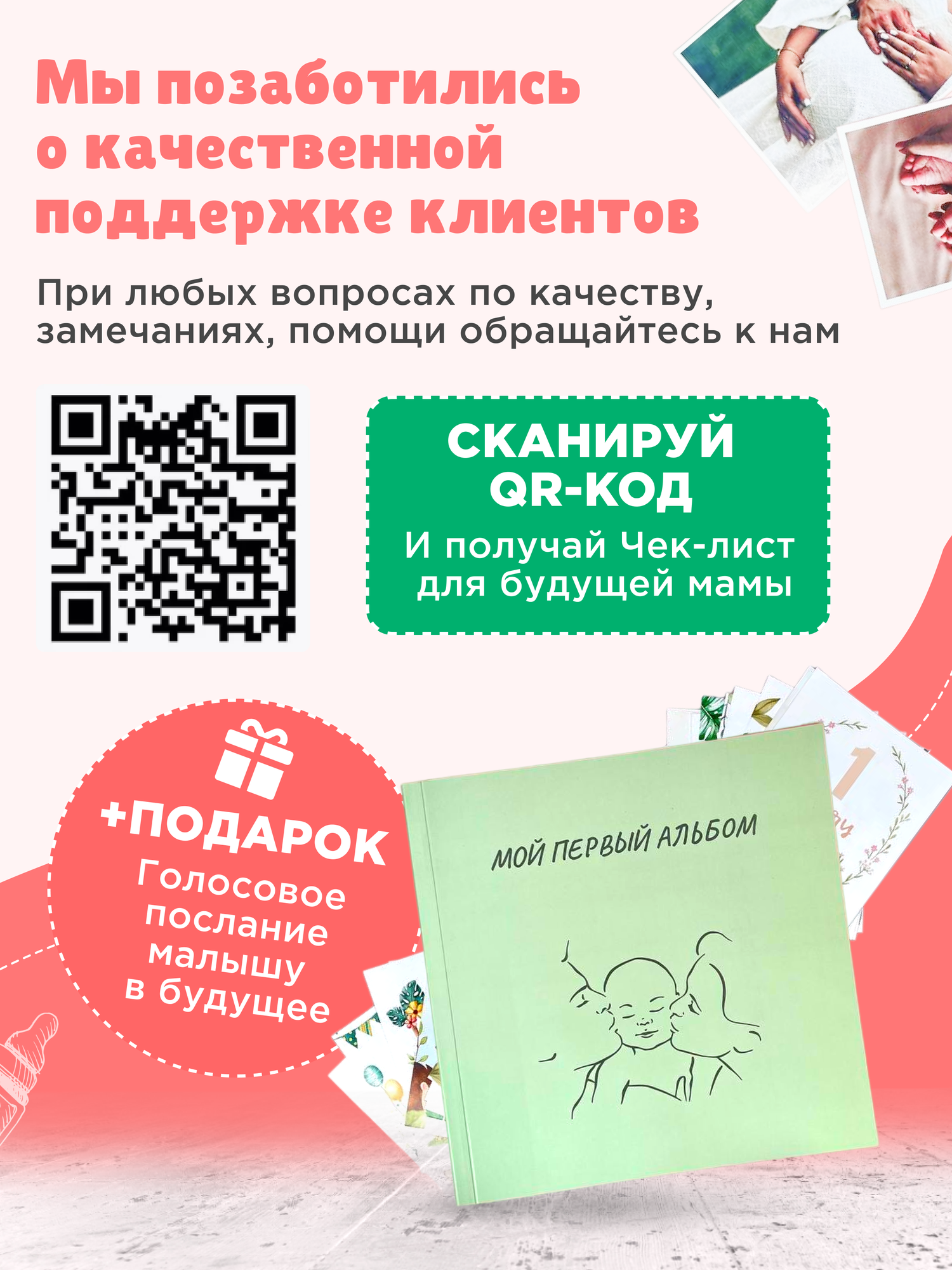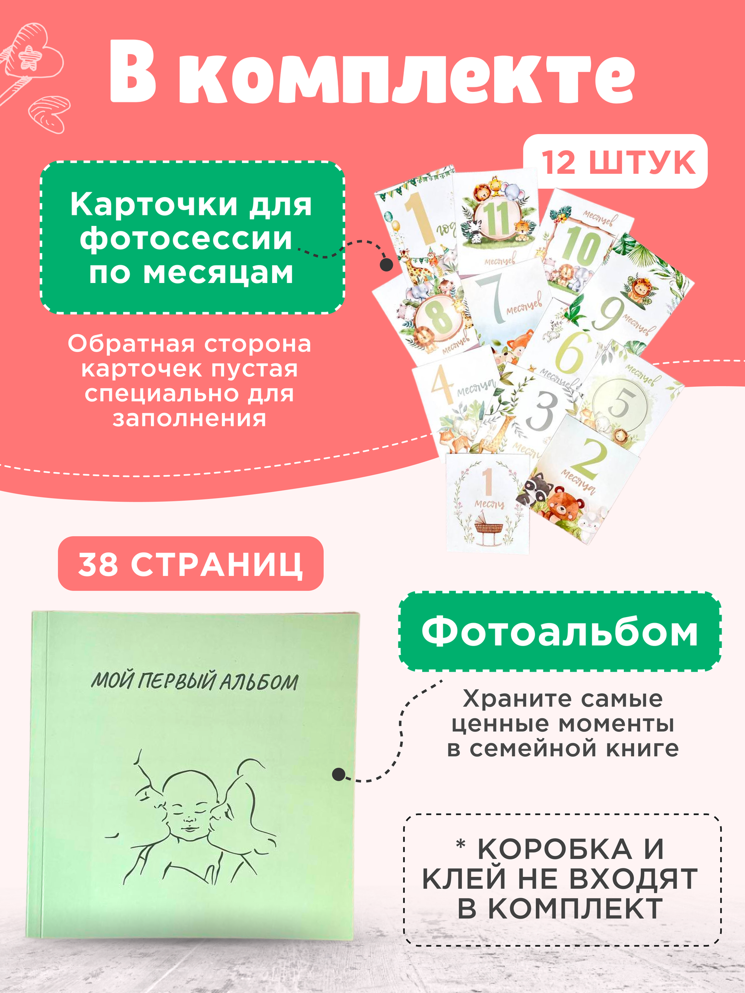 Фотоальбом для новорожденных 21х21, подарочный набор интересное: