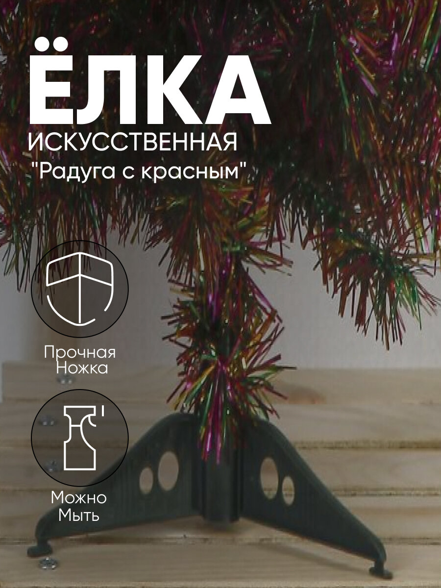 Ёлка радуга с красным 90 см, d иголок 6 см, веток 90 шт, пласт подставка
