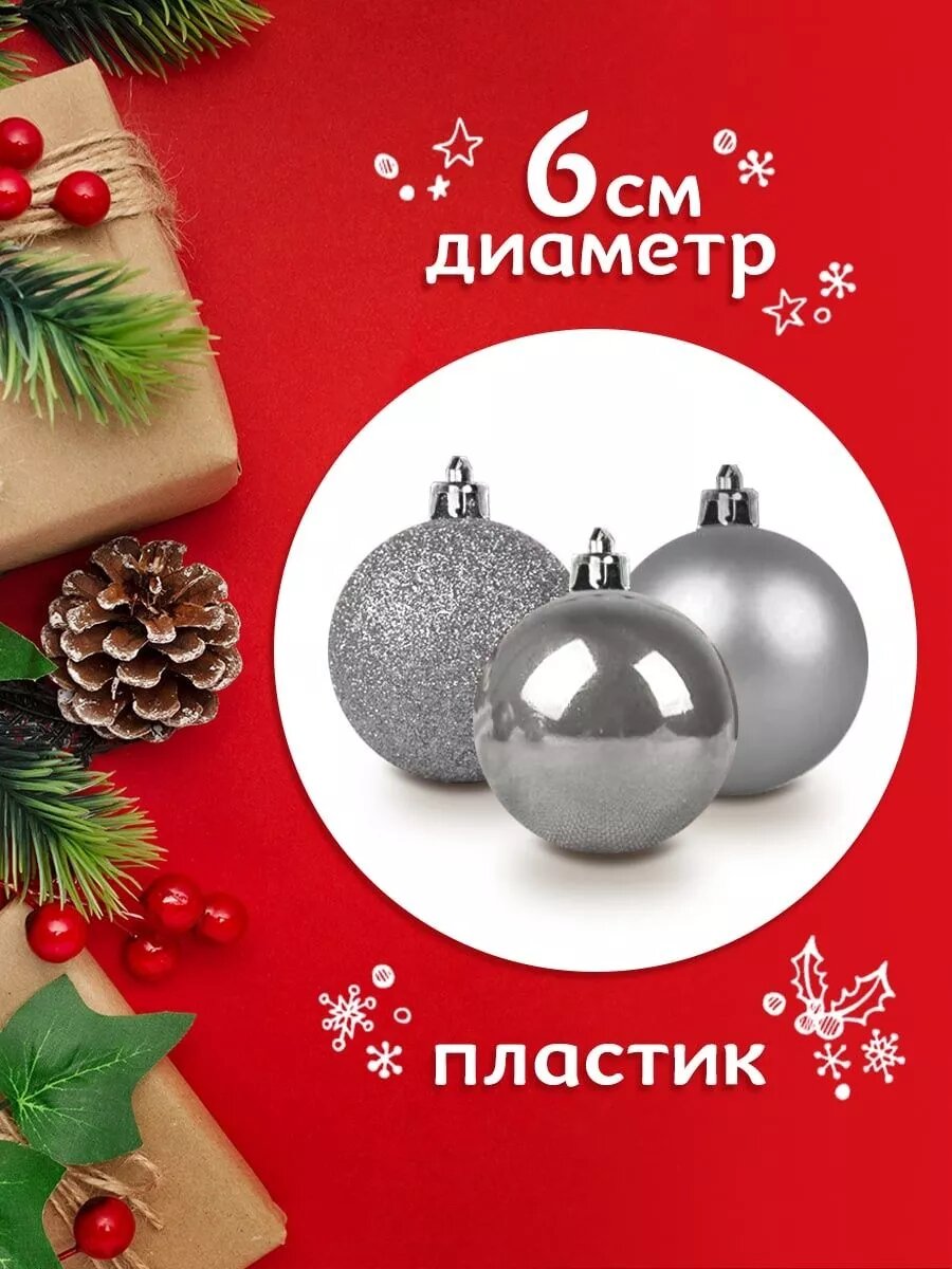 Шары елочные игрушки новогодние украшения на елку шарики декоративные на Новый Год 2024 и Рождество набор 12 шт, диаметр - 6 см из пластика