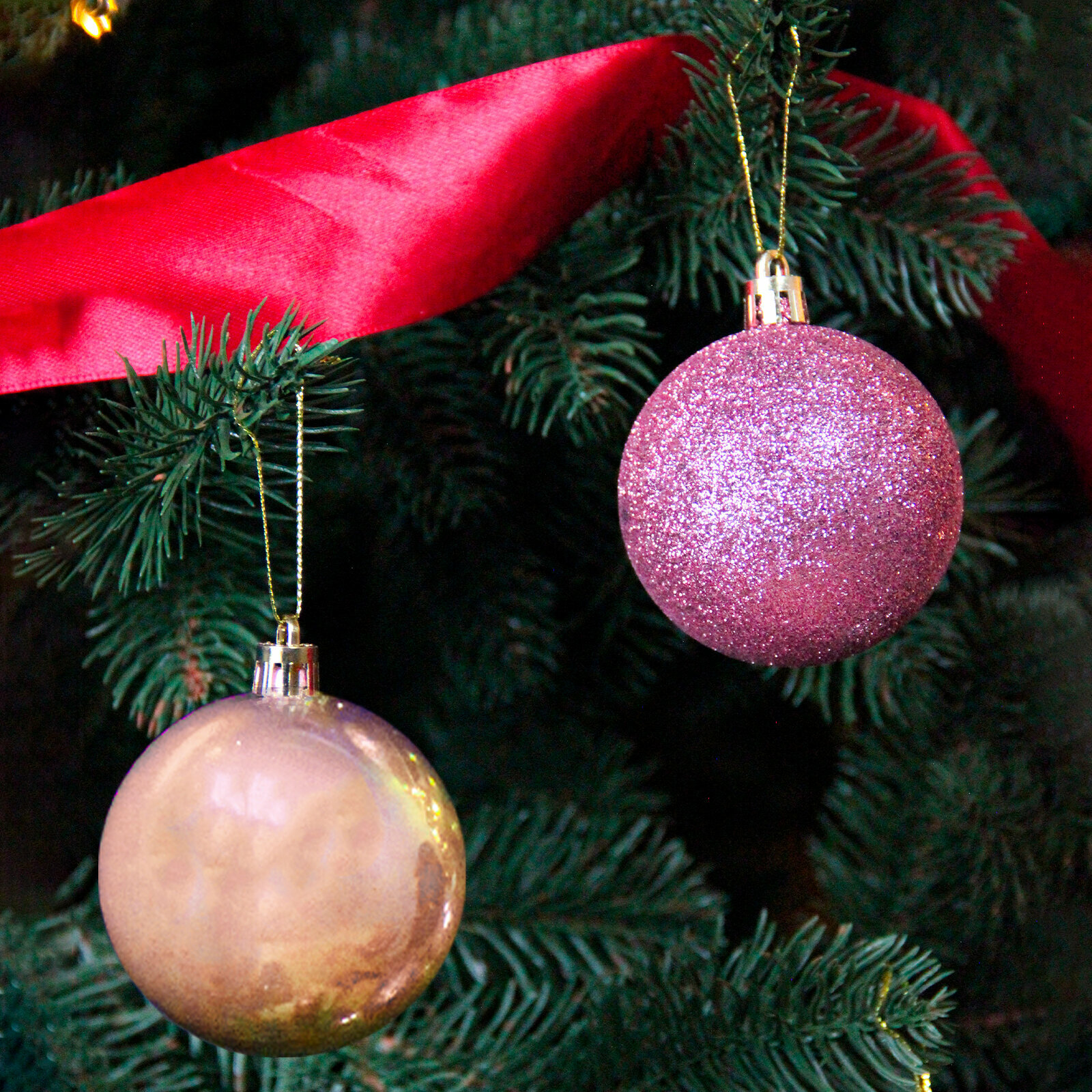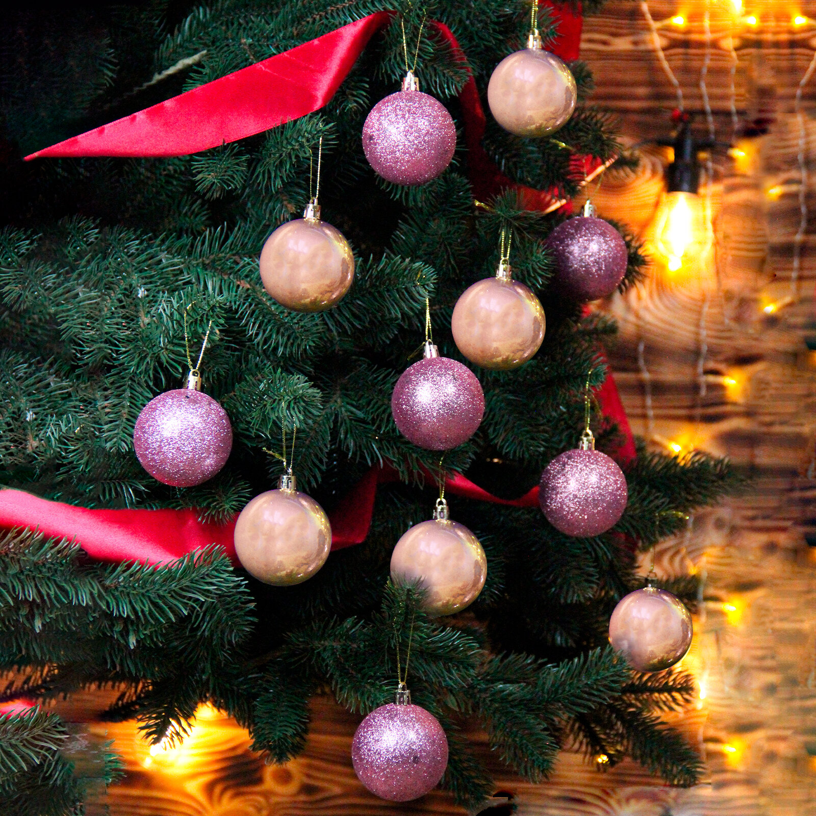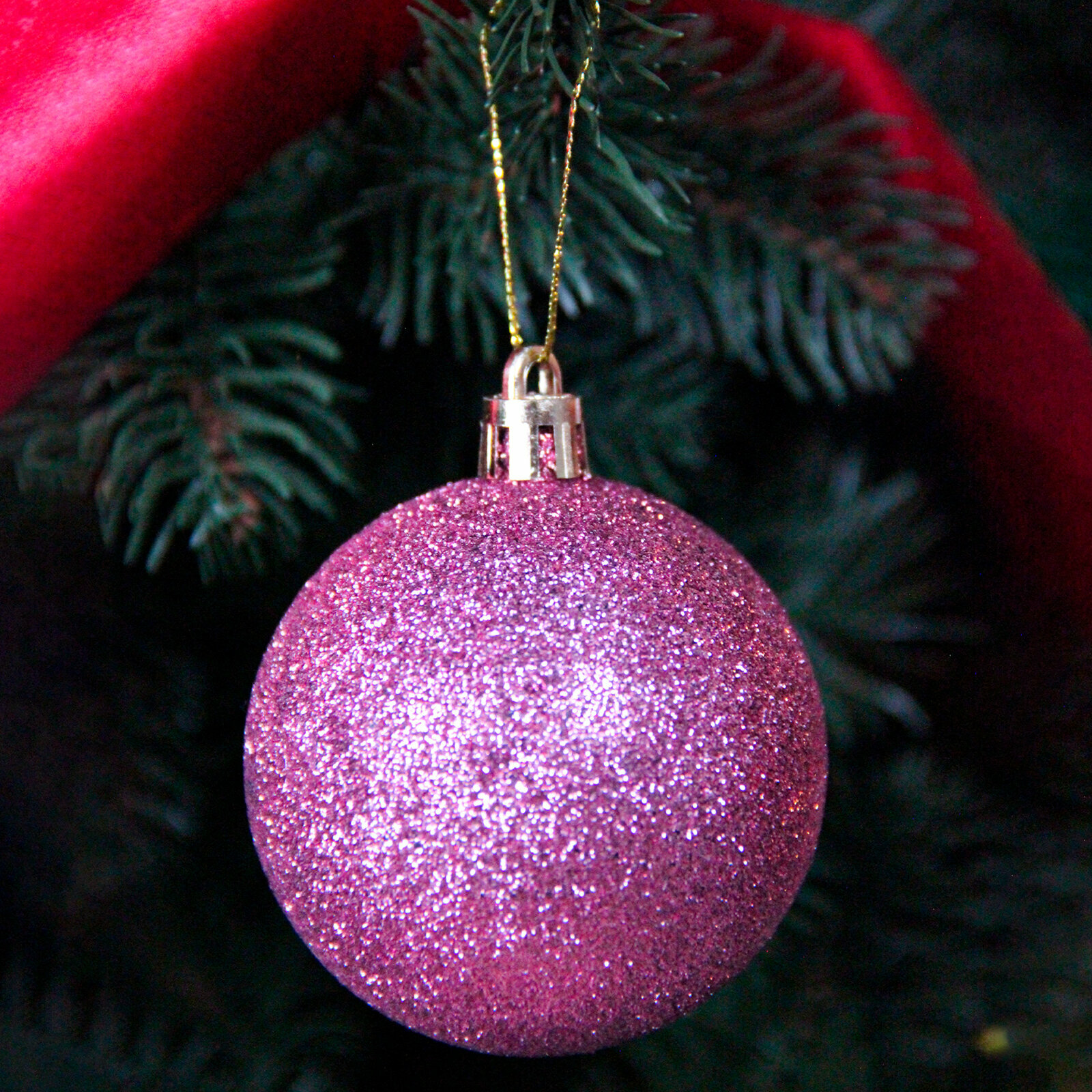 Набор шаров на елку 6см 24шт ярко-розовый