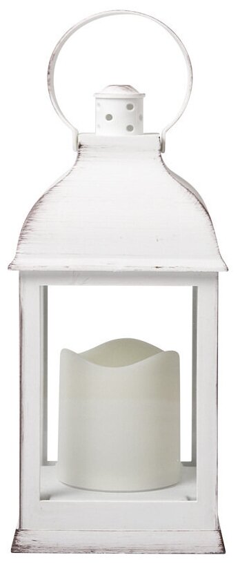 Декоративный фонарь со свечкой, белый корпус, размер 10.5х10.5х22,35 см, цвет Теплый Белый 513-054