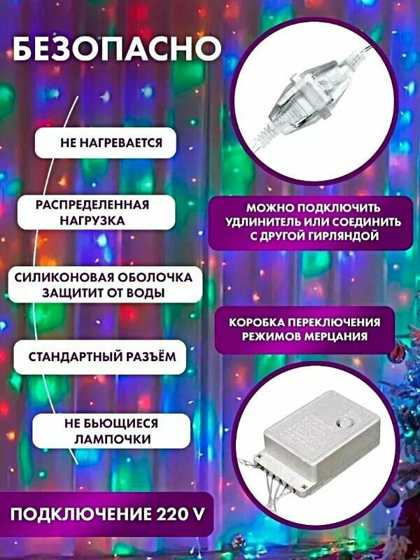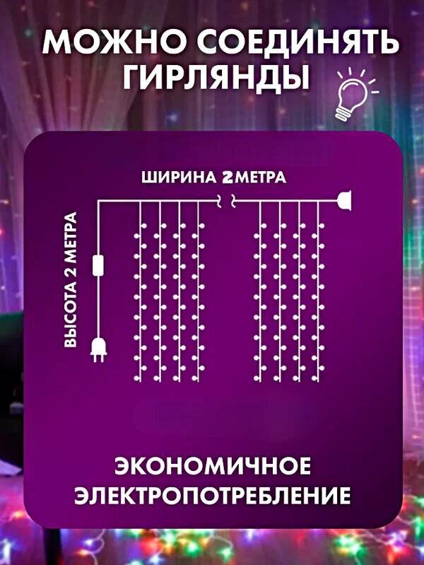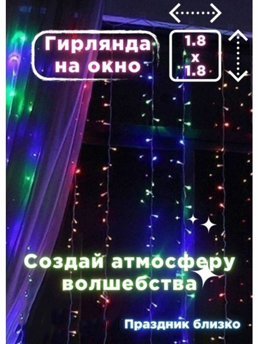 Гирлянда штора "Светодиодный Дождь", гирлянда занавес на окно светодиодная, 1.5 x 1.5 разноцветная цвет теплый интересное: