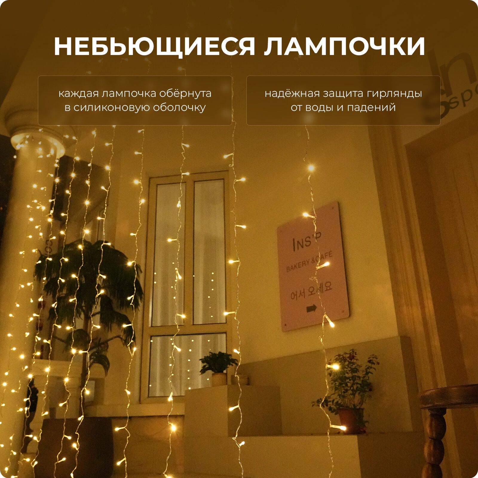 Гирлянда "Занавес" (теплый белый свет), 3х3 м интересное:
