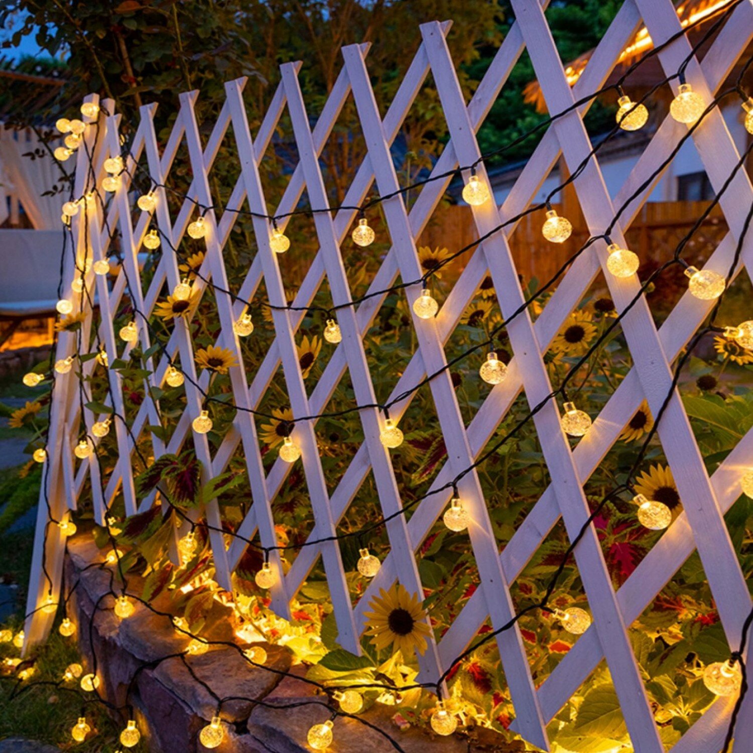 Светодиодная гирлянда в форме шариков (2,4 см) белые на солнечной батареи 30 ламп 6 метров