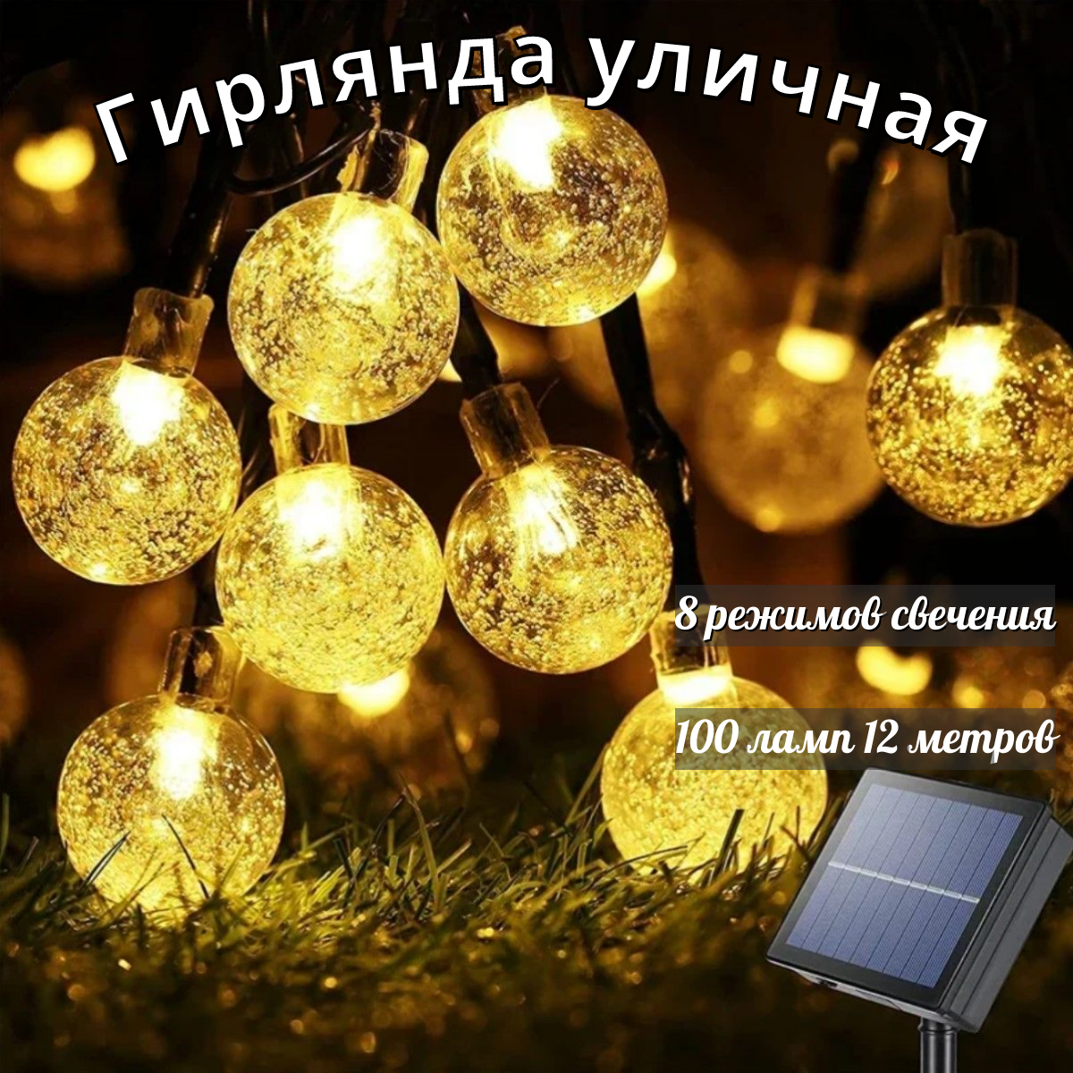 Светодиодная гирлянда в форме шариков (1,7 см) желтые на солнечной батареи 100 ламп 12 метров интересное: