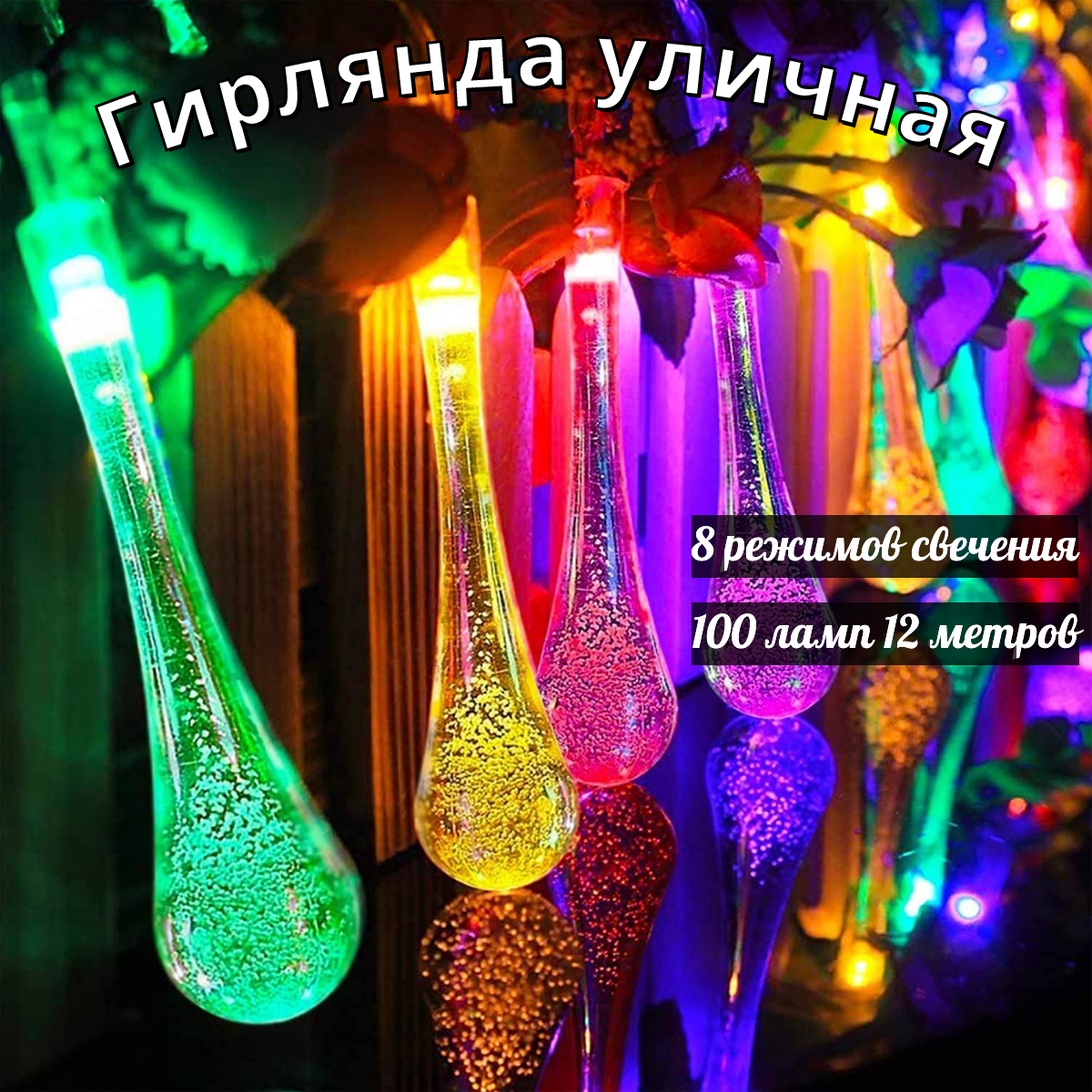 Светодиодная гирлянда в форме капель (5,8 см.) цветные на солнечной батареи 100 ламп 12 метров интересное: