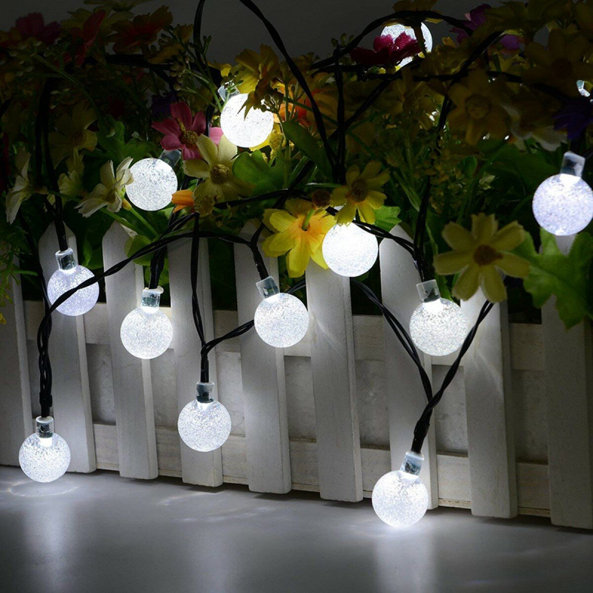 Купить Светодиодная гирлянда в форме шариков (2,4 см) белые на солнечной батареи 100 ламп 12 метров