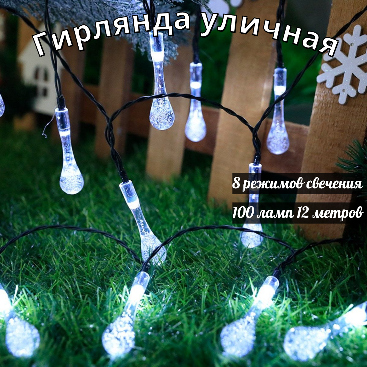 Светодиодная гирлянда в форме капель (5,8 см.) белые на солнечной батареи 100 ламп 12 метров интересное: