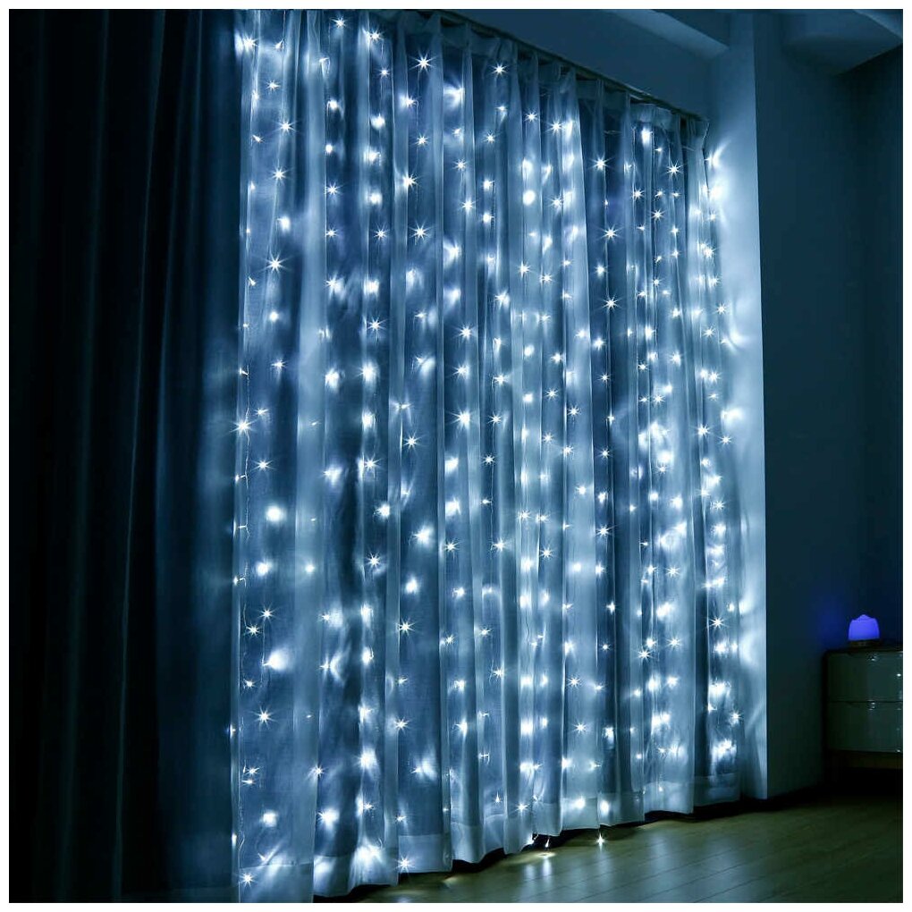 Гирлянда дождик 3 х 2 метра / Новогодняя штора / Занавес на окно / Гирлянда занавес / Гирлянда штора цвет: белый
