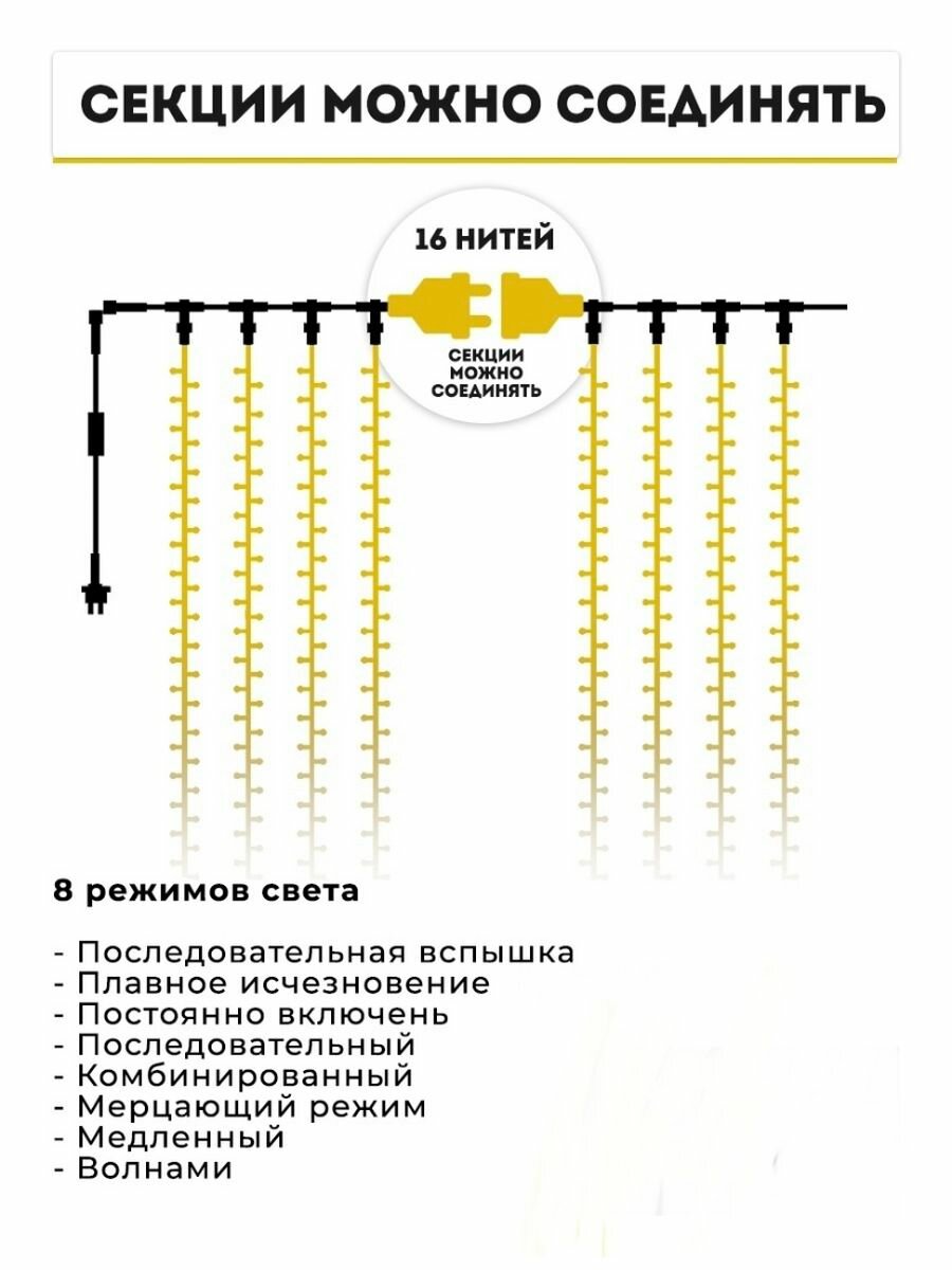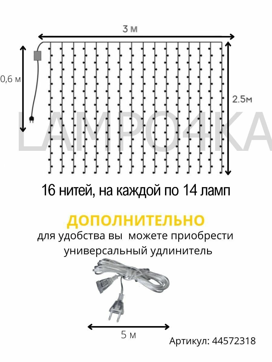 Светодиодная гирлянда-штора "LAMPO4KА", 3 х 2,5 метра, теплый белый цвет