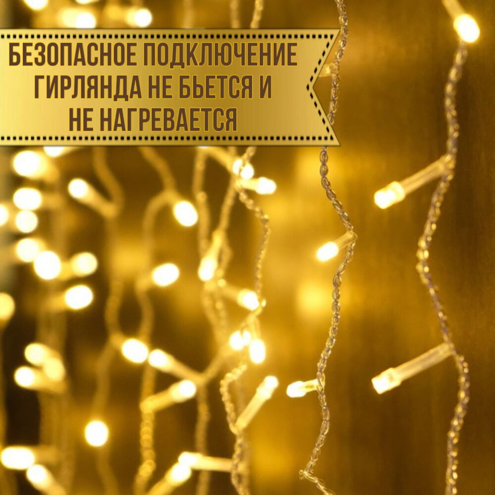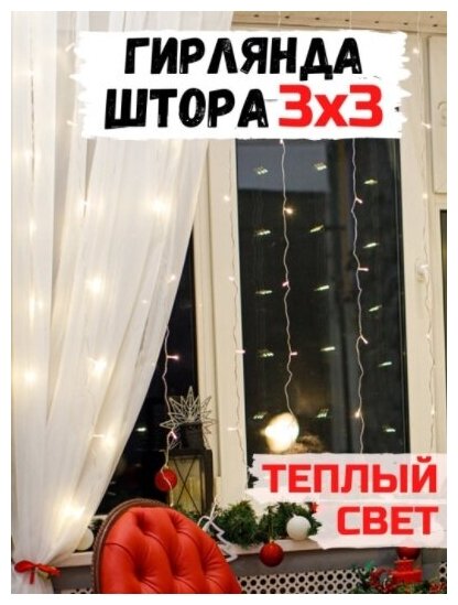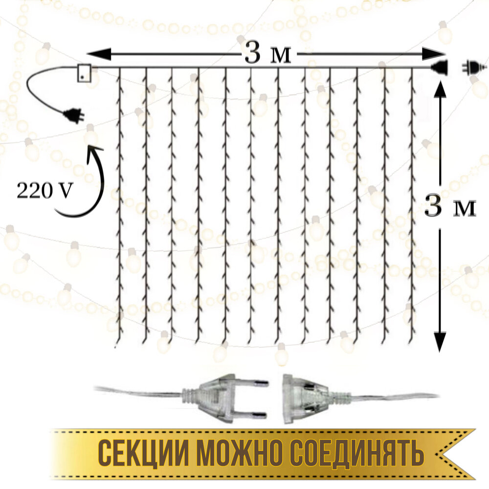 Гирлянда штора 3 х 3 метра / Гирлянда штора на окно / Гирлянда занавес / Гирлянда дождик 3 х 3 метра теплый желтый интересное: