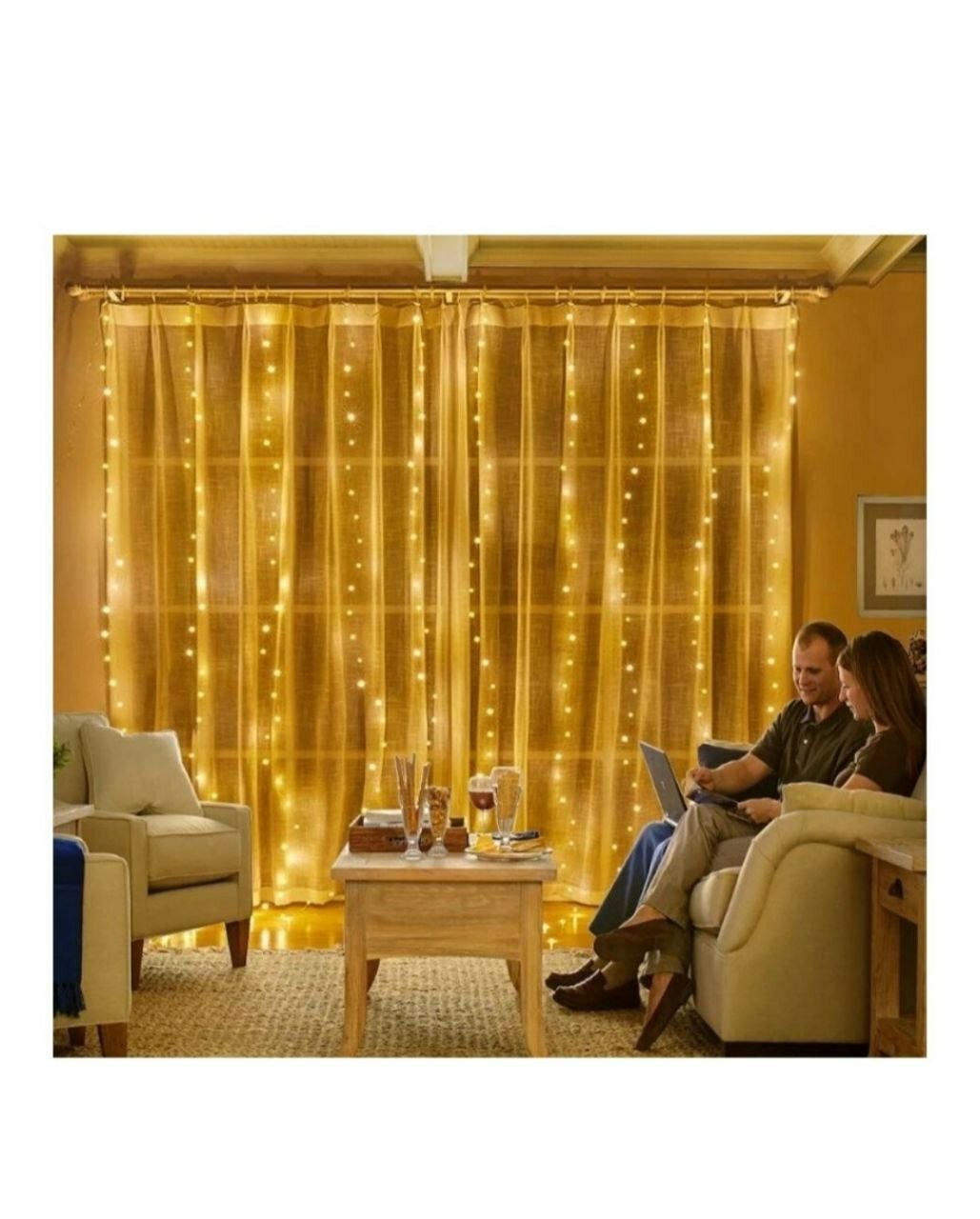 Гирлянда-штора 3х2 м, теплый желтый цвет