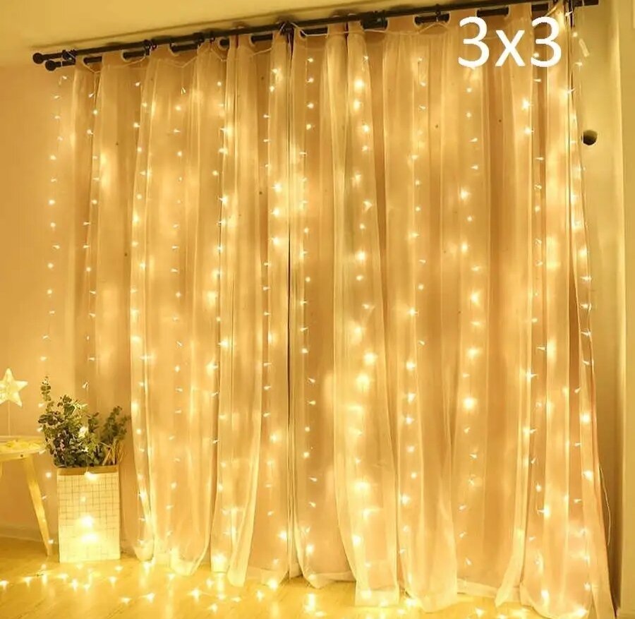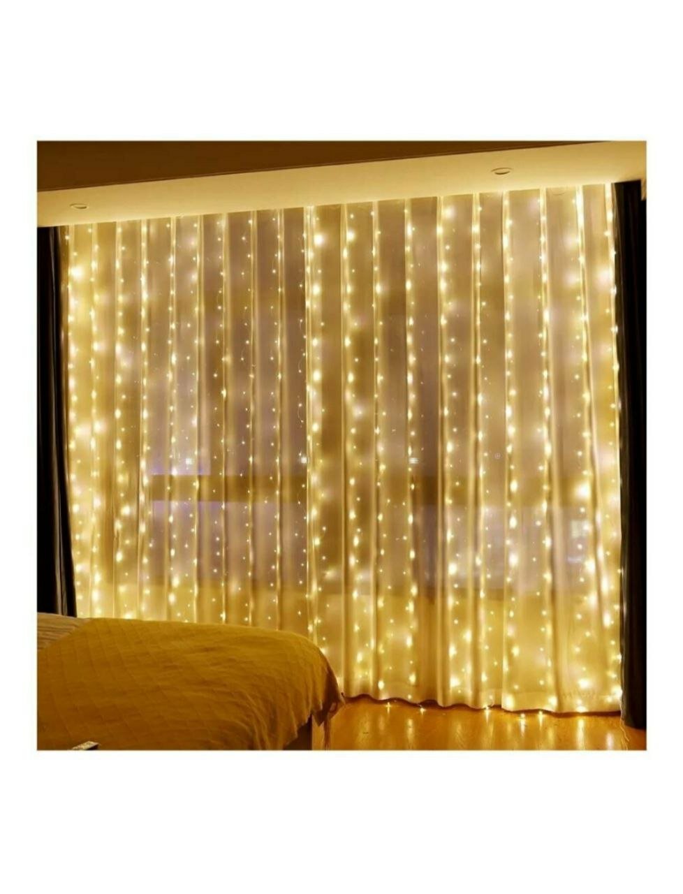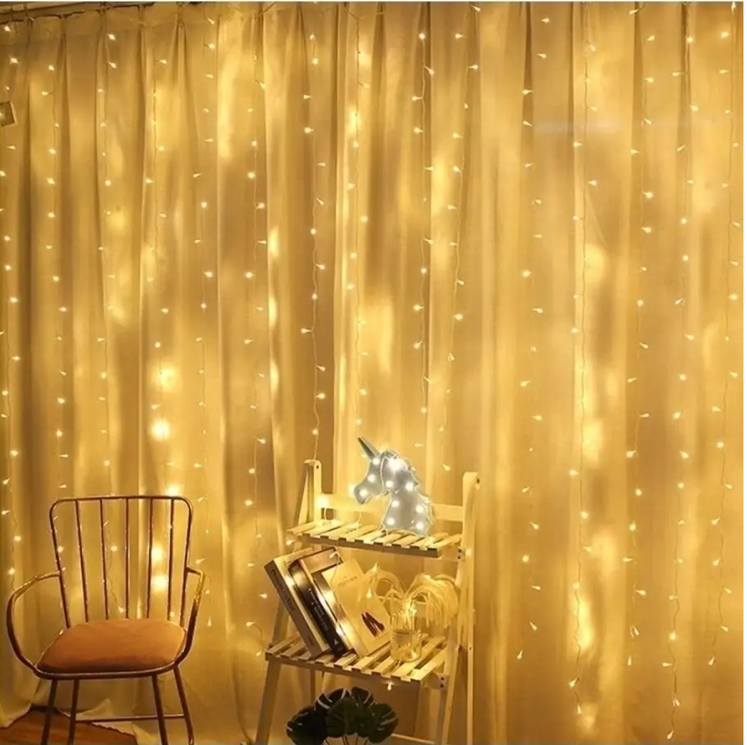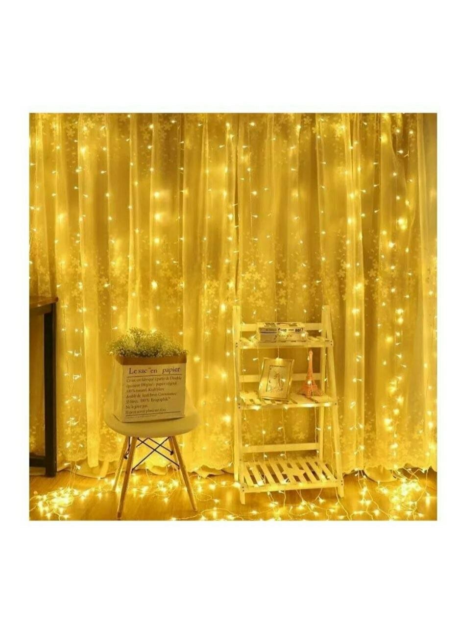 Купить Гирлянда штора 3 х 3 метра / Гирлянда штора на окно / Гирлянда занавес / Гирлянда дождик 3 х 3 метра теплый желтый