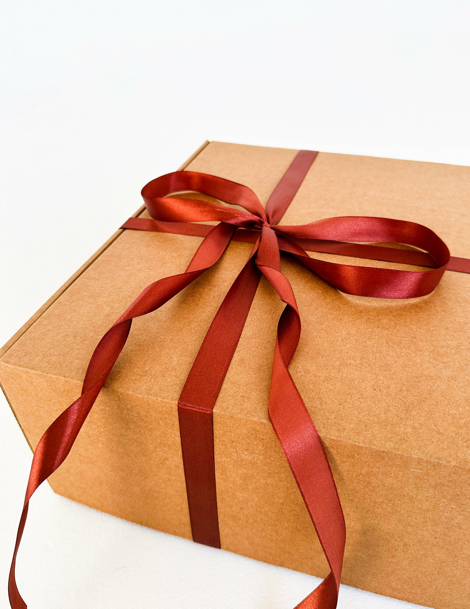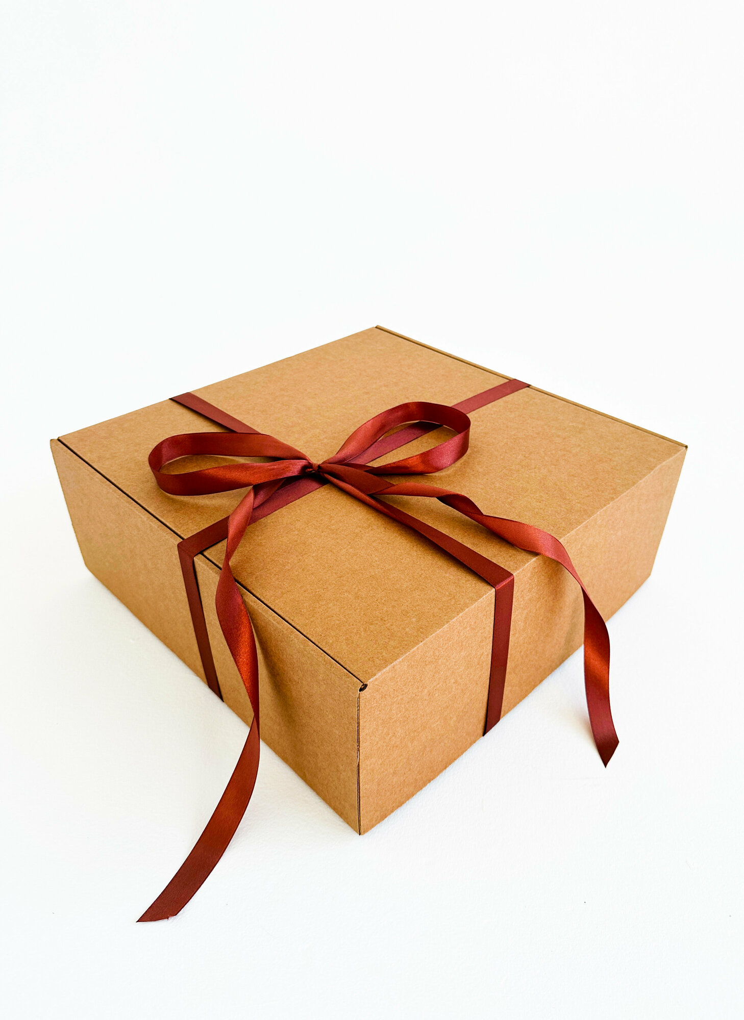 Огромная подарочная коробка GILEV 45х45х20см с бордовой лентой и наполнителем крафт