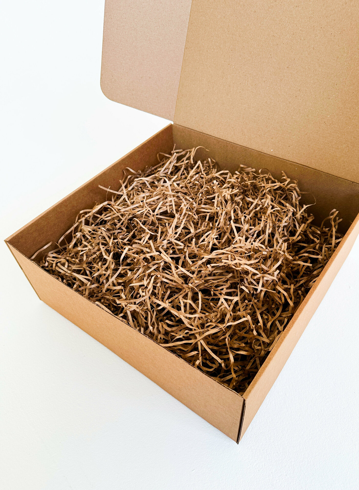 Огромная подарочная коробка GILEV 45х45х20см с коричневой лентой и наполнителем крафт