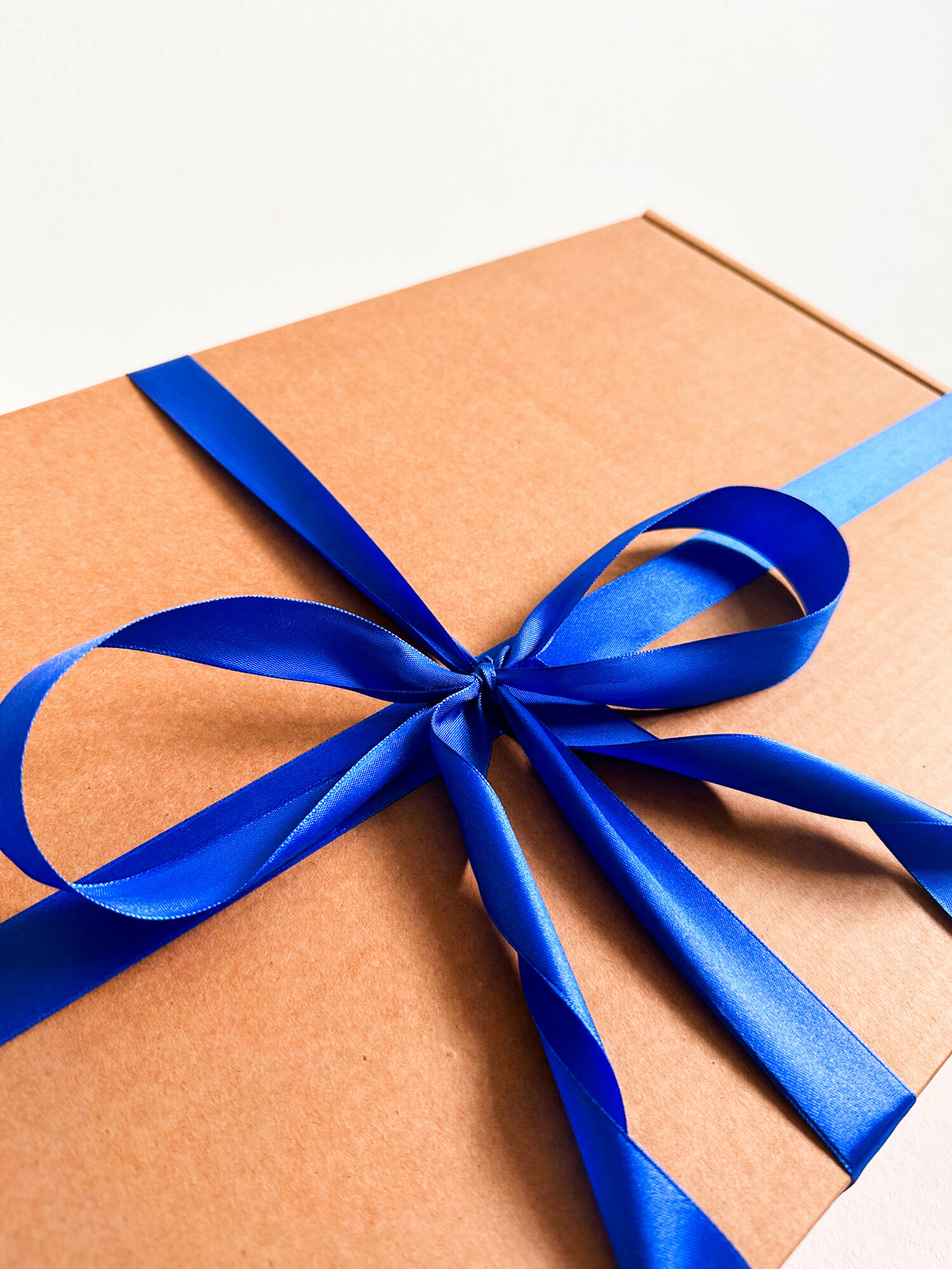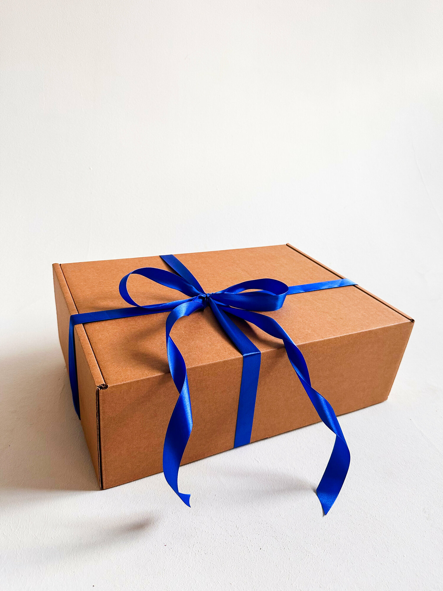 Купить Большая подарочная коробка GILEV 44x32x15см с наполнителем и синей лентой