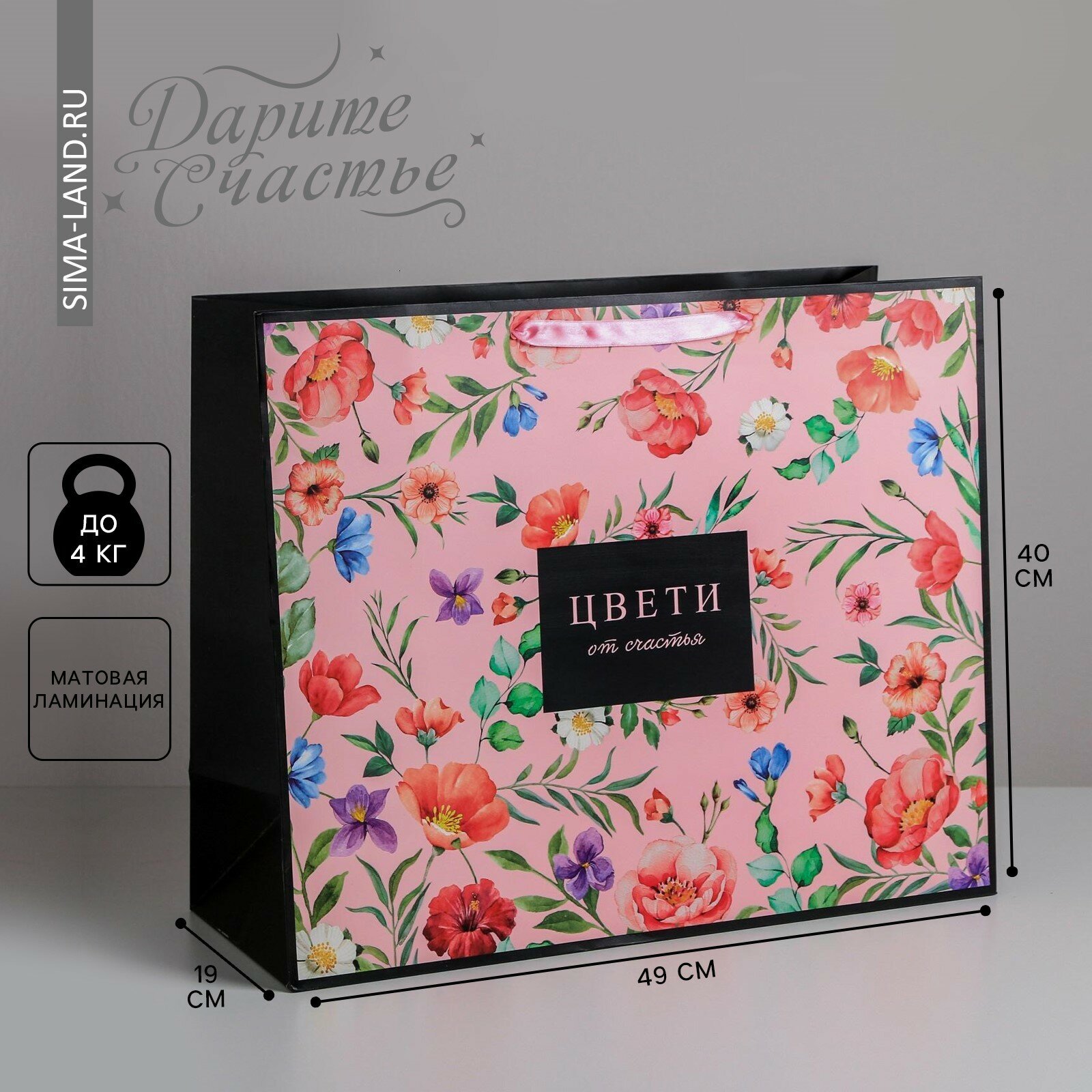 Купить Пакет подарочный ламинированный большой «Цвети», 49 × 40 × 19 см