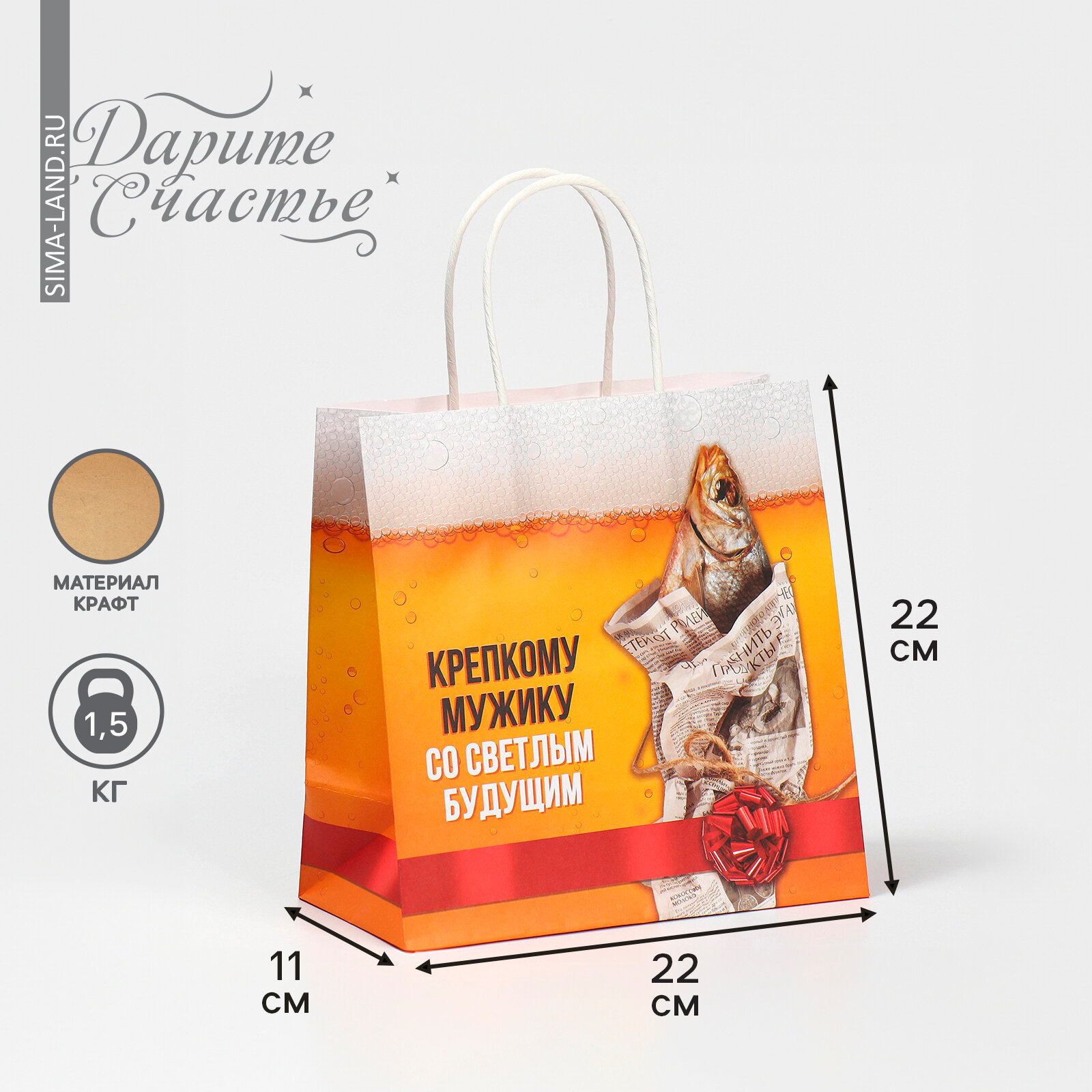 Пакет подарочный крафтовый «Мужику», 22 х 22 х 11 см