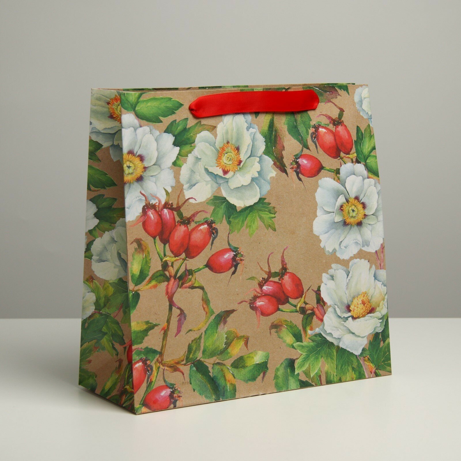 Пакет подарочный крафтовый с ручками Арт Узор 'Цветы' 22*12*27 см (9924485)