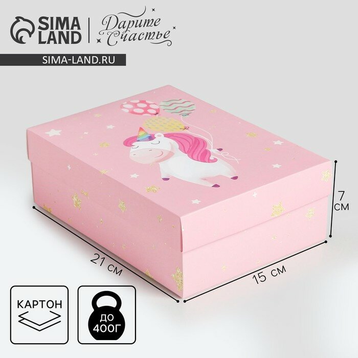 Коробка подарочная «Единорог», 21 × 15 × 7 см, розовый, картон, для упаковки подарка