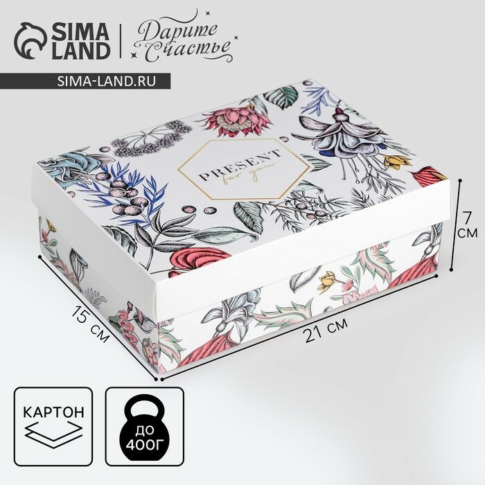 Коробка подарочная складная «Цветочная», 21 × 15 × 7 см, картон, для упаковки подарка